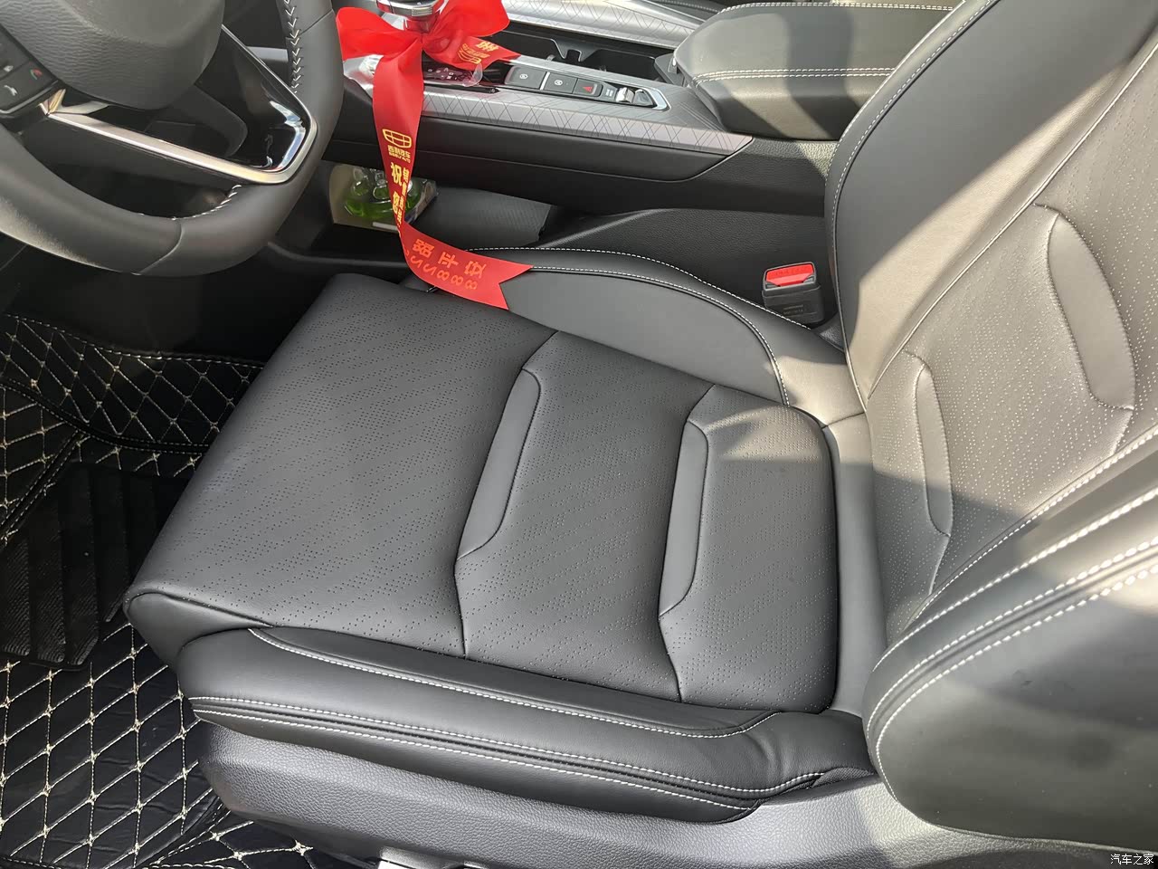 内饰的颜色是黑色的,比较经典耐看,不会过时,配上白色的缝线,更加有一种高档有品质的感觉。而且基本上看的到的地方都是皮质软包的,看起来比较有质感,内饰的用料也是比较好的,新车拿到手的时候就没有什么味道。中控台的位置设计的很好,用起来很顺手。
