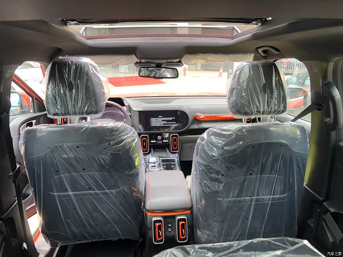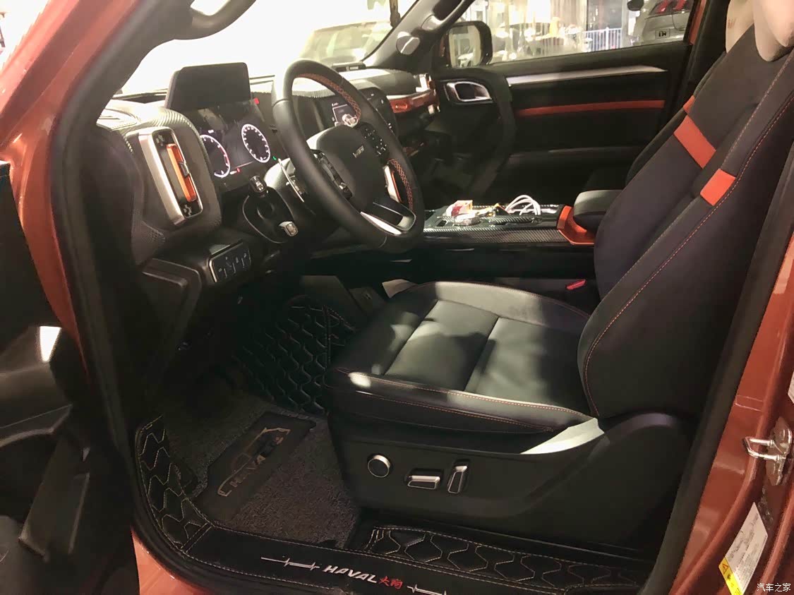 内饰采用双拼色,我的是黑橙配色,大狗一共有四个内饰颜色(黑橙、蓝绿、米粽、黑),车内用料环保可靠,新车味道晾一晾几乎十天左右就散掉了,内饰清洁起来也方便,配色简约大气!最主要的是大狗副驾驶的越野把手把我的心给迷住了,可谓是内外形成呼应!