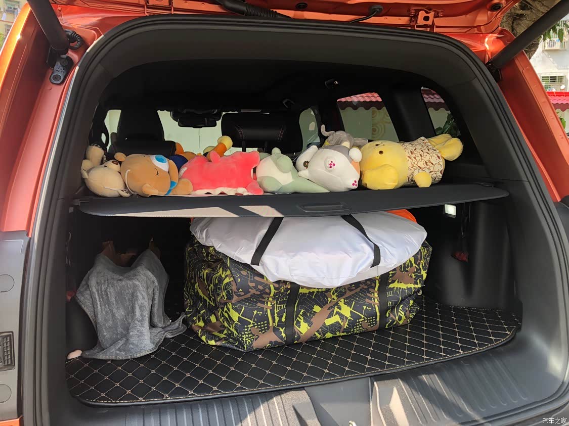 大狗后备箱空间对于我来说,只要自己会收纳,不乱丢乱放再多的东西也可以挤的下,像我出去户外喝茶露营,四张折叠凳一张折叠桌子一个帐篷,还有烧水工具小瓦斯炉,锅碗瓢盆,天幕,食材等用品,后备箱的一半空间就可以全放下了!外出旅行的话收起后备箱伸缩分层板,行李箱24寸的可以放3个不在话下!