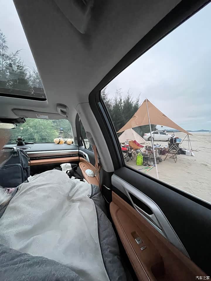 后排空间表现也很优秀,我身高一米八座后排可以半躺跷二郎腿无压力,睡眠座舱我已经多次在外露营使用过夜了,体验也很棒。