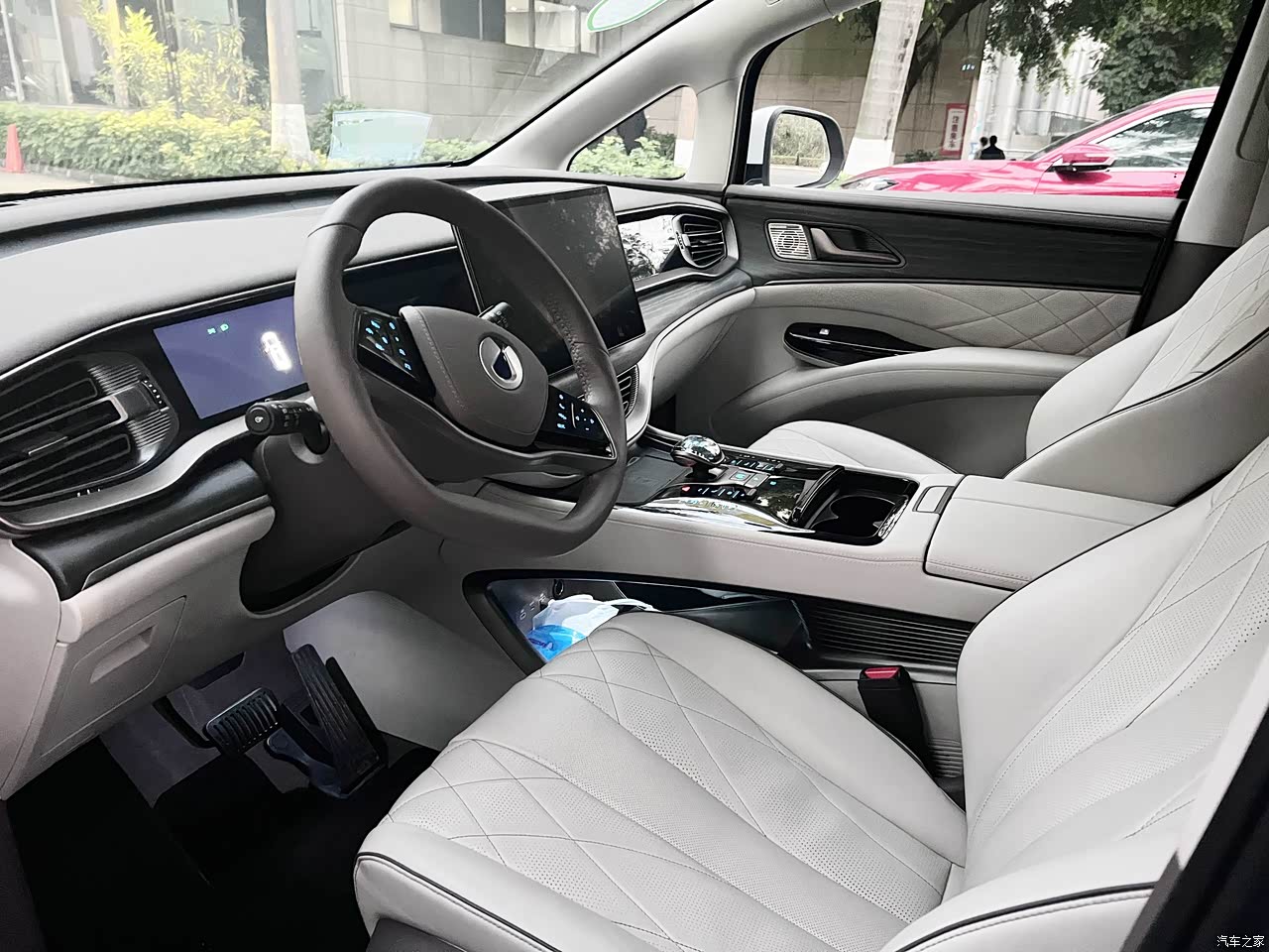 内饰的颜色搭配时尚,用料好,做工细节处理的认真。座椅使用材质软硬适中,主座椅有腰部支撑,前两排能够加热,透气性好。车上的隔音做的不错,车子过减速带时候颠簸也不大,坐在上面挺有舒适感受的。配置的中控屏尺寸大, 功能搭配全面,科技感满满的。内置整体看上去也比较的奢华。