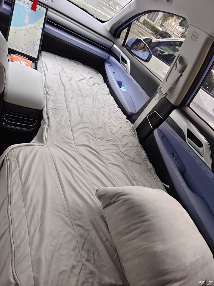 作为一辆A级车,长度达到4.8米,轴距达到2.768米,使得车内空间直逼B级车,前排坐着个大汉的情况下,后排仍旧可以轻松翘二郎腿,Nappa真皮的座椅乘坐舒适感也很足。 而开启睡眠空间之后,只要放上充气床垫,P5又可以秒变单人床或双人床,在车里面休息还是很舒服的。