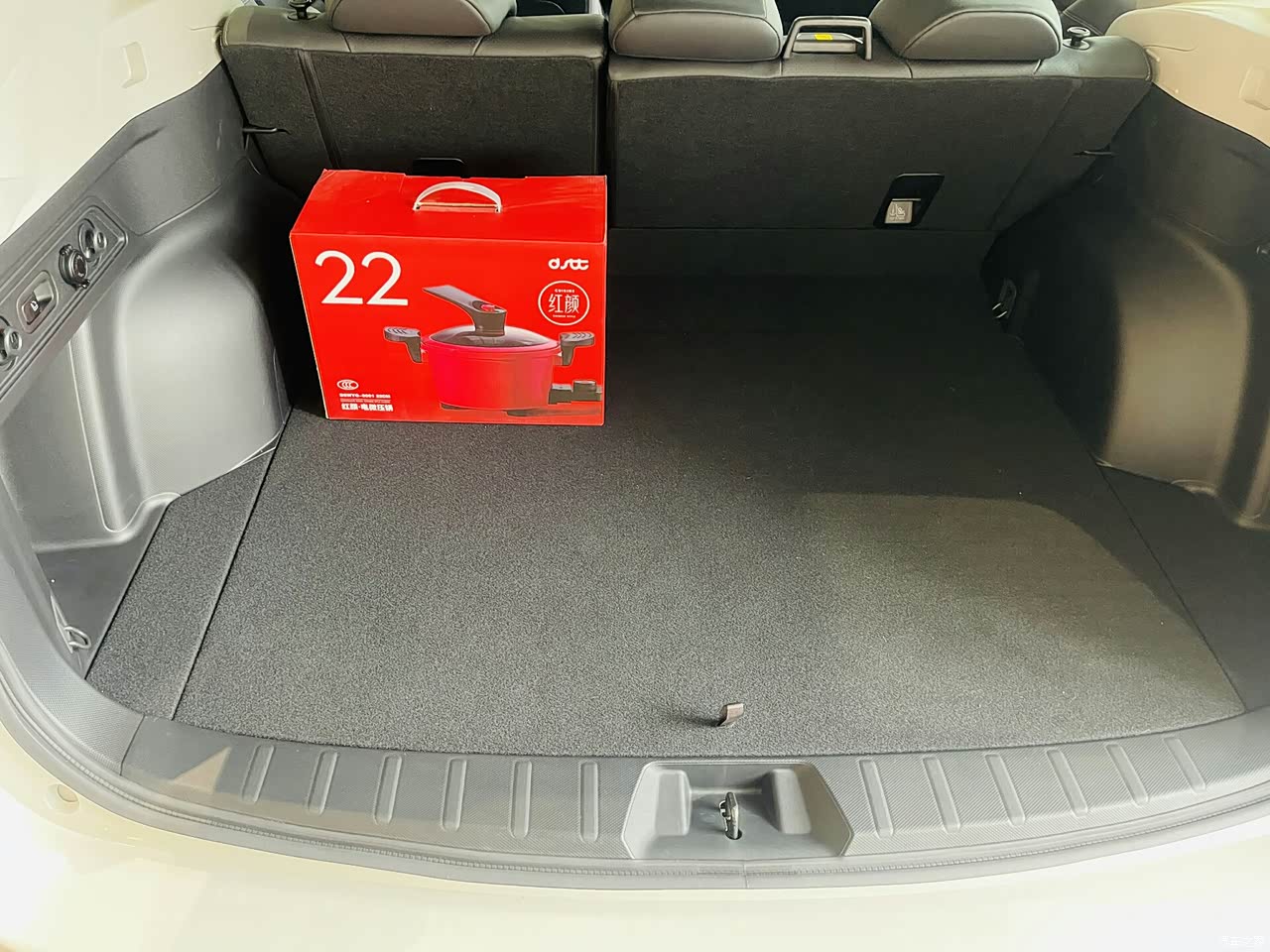 后备箱空间足够能装,当时介绍说的是5百多深还是600多深,感觉拉2头猪都没有问题,之前家里开的轿车,感觉后备箱确实会比较局促一些。这个后排的倚靠还可以放到