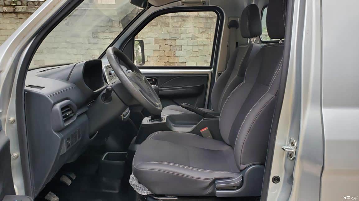 前排坐着还挺舒服,就算我是一个140斤的胖子也没有什么压迫感,相反,视野还很好,驾驶起来很轻松。后面的货箱超级实用,平常拉点重货完全不是问题。