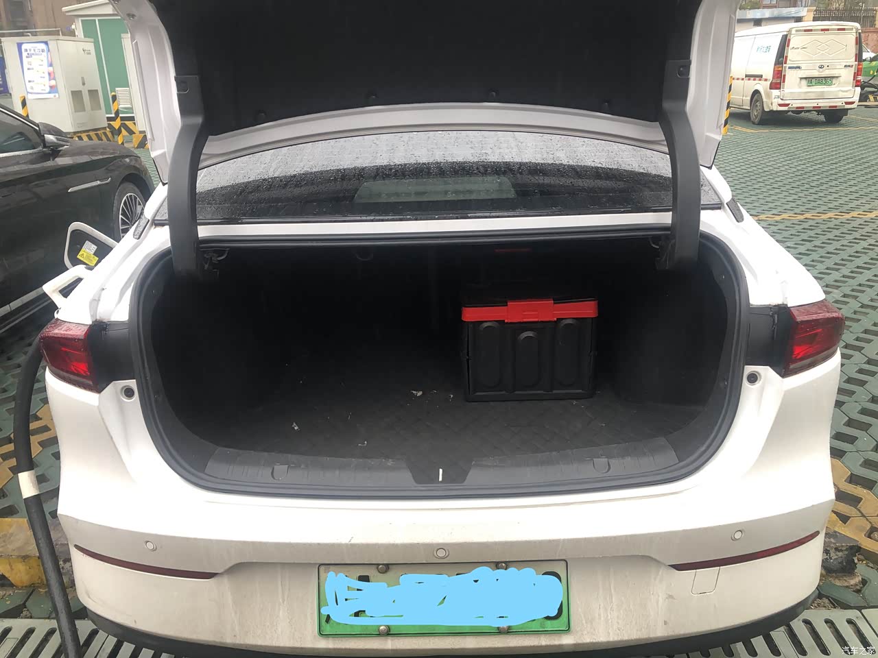 后备箱容积在同级电车里面算是比较大的了,平时出个远门一家人的行李箱子完全能够装下。后备箱的开口也比较大,拉个大件也很轻松,实在不行就放到后排座。