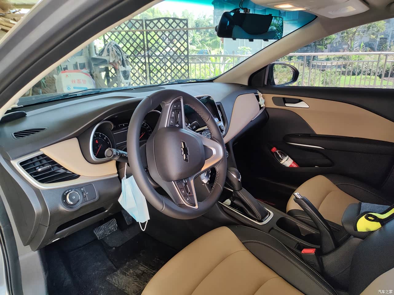 内饰相对于国产车来说比较俗气一起,硬塑的中控台,还有棕色的皮革相间,属于双拼内饰,手感还算过的去!