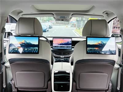 内饰用料很高级,运用了大量的软性塘塑材质以及真皮包裹,肉体能触摸到的地方都是软的,第二排一样配置了多媒体屏幕,看新闻最合适了。