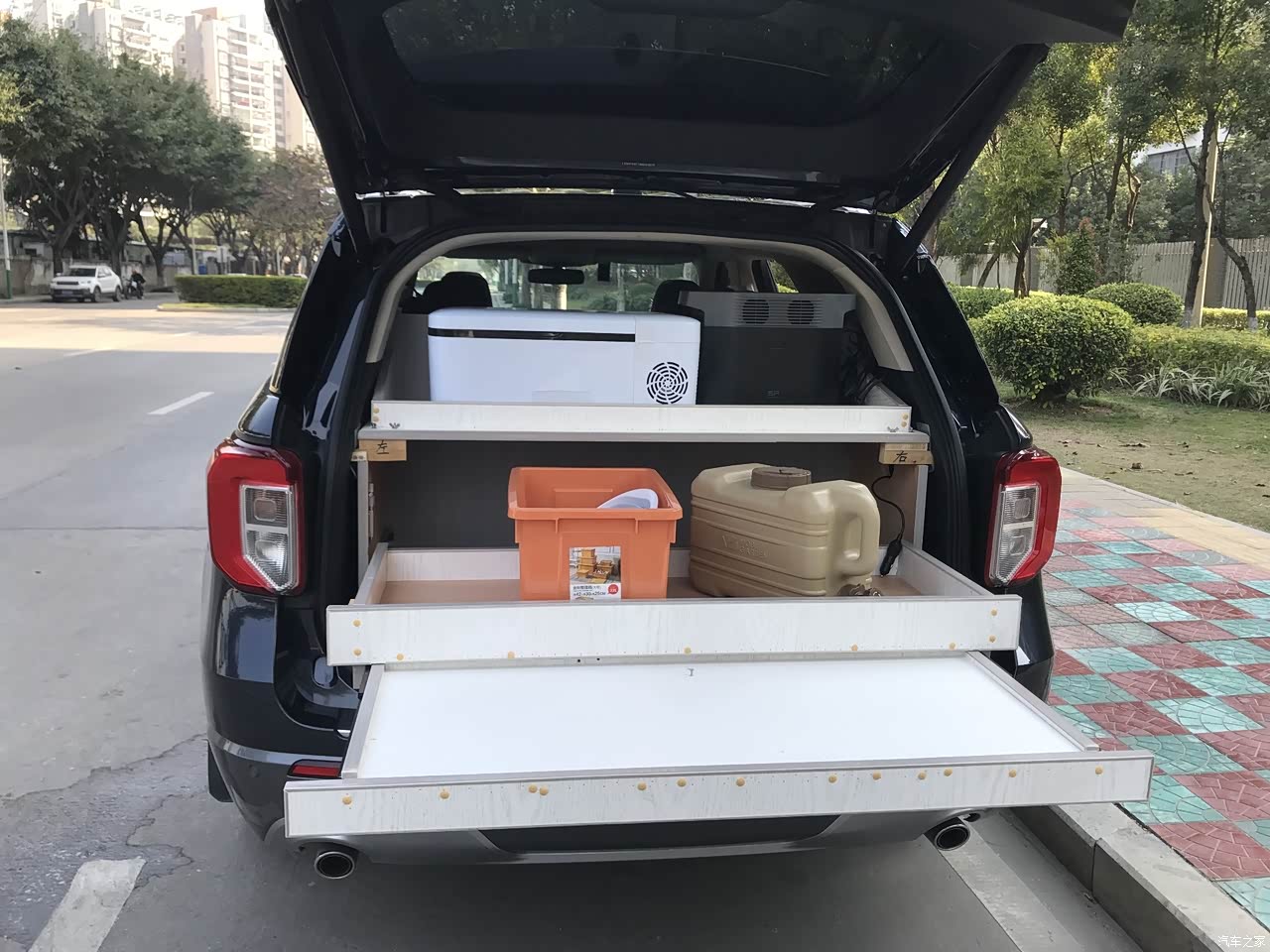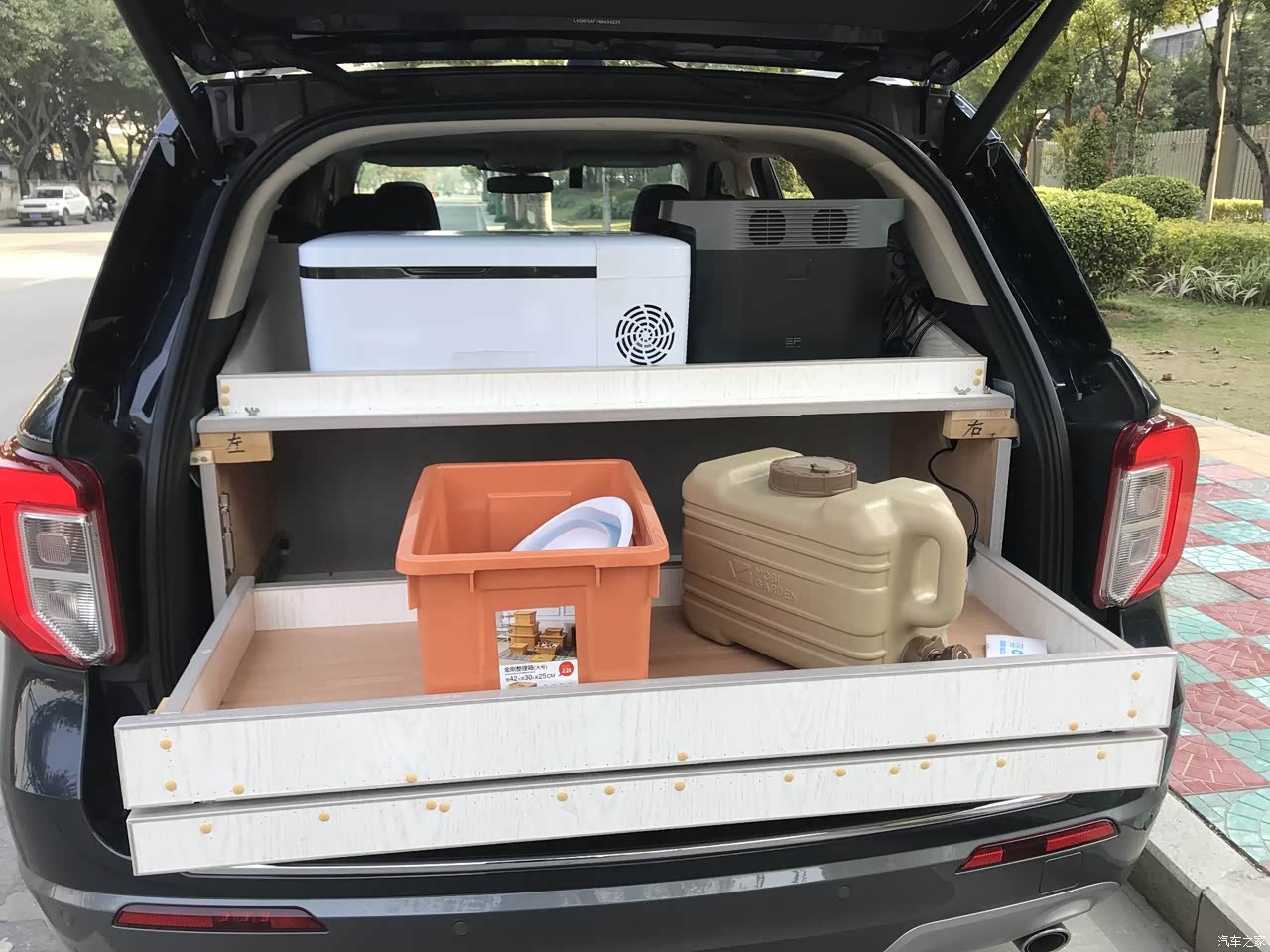 买这个车也是为了自驾游,所以自己动手做了一些无损改装,后面是一个车尾厨房配置