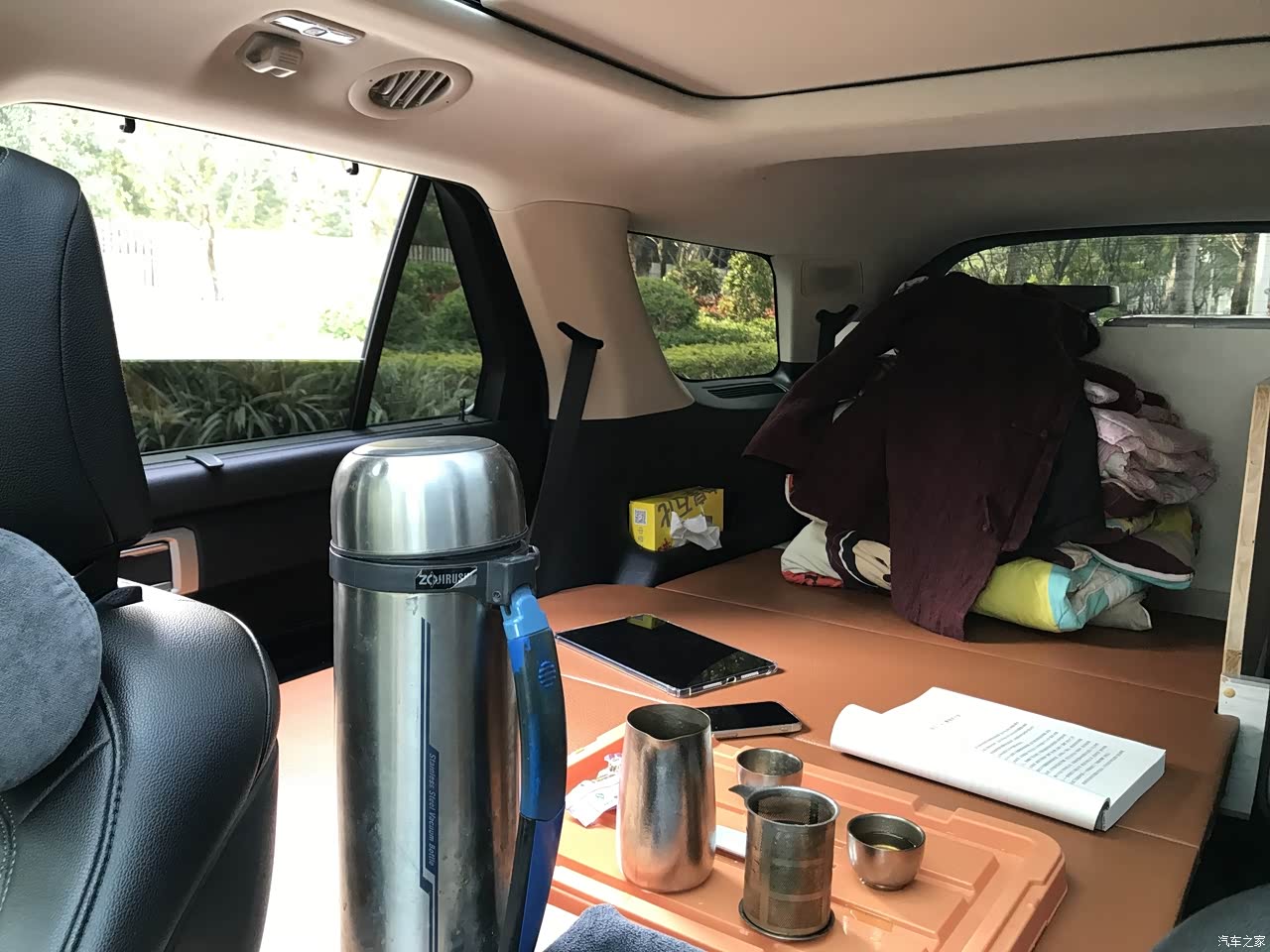 空间对我1.72的身高绰绰有余,家里人个头也不超过1.75,所以乘坐空间也没有问题。由于我打算自驾游做床车,第二排右侧二个座椅加上第三排座椅放倒,变成一个1.6米长0.9米宽的一个床,如果副驾座椅再往前移,就变成长1.82,睡觉没有问题。如果坐5个人,可以把床架和木板拆下来放在第二排和第三排中间的位置。