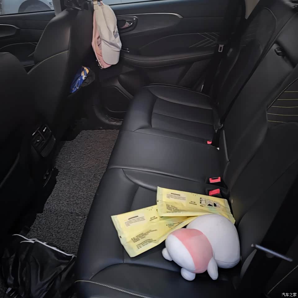 车内的空间大,两米七多的轴距尺寸,保证了前后排都有很宽敞的腿部空间,我175的个子,在后排坐上去之后膝盖和前排座椅靠背之间,目测是有个两拳多的距离的,换个别的车,还真不一定能这么大,地板相对平整 坐中间的人也不会不舒服,后备箱也特别的大,放三四个行李箱都不成问题 座椅还支持比例放倒 完全可以当成一张床来使用 门板储物空间可以放好几瓶水和纸巾。中控下部也有一个大空间可以放置物品,非常便捷。扶手架可以放置手机顺带无线充,这个很不错,后排扶手架也可以放饮料满足日常需求