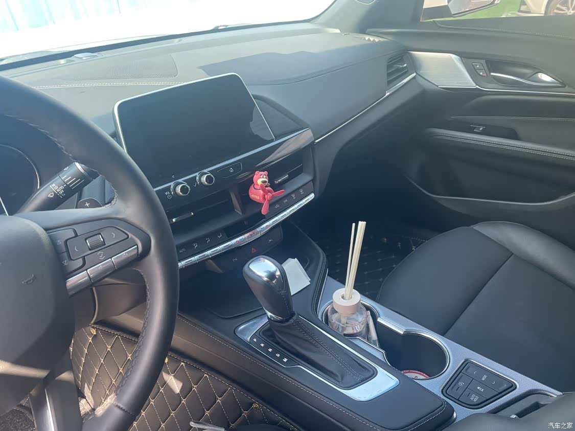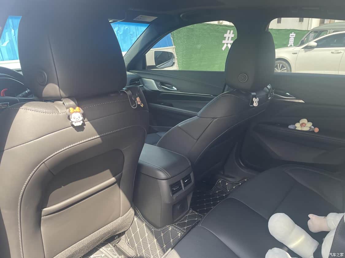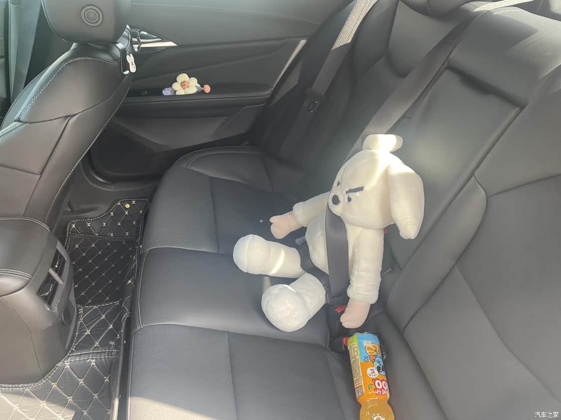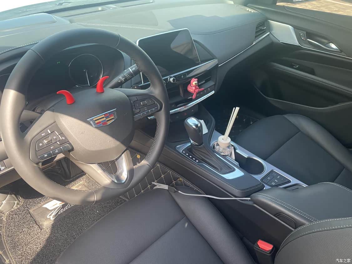 深色的内饰比较的沉稳也比较的耐脏,并且我白色的外观我也觉得非常的耐脏,大屏是触摸屏的设计,加上最下面一排按钮的设计,非常的科技也非常的方便,座椅上双缝线的设计,符合凯迪拉克时尚的味道, 中控双个杯控的设计我觉得比较人性化的,现在出门,春天,秋天的第一杯奶茶当然要安排上了啊,所以和小姐妹出门,放置奶茶真的是比较方便,后排我平时一人使用的时候,我都放置个我喜欢的玩偶,增加车内的温馨感