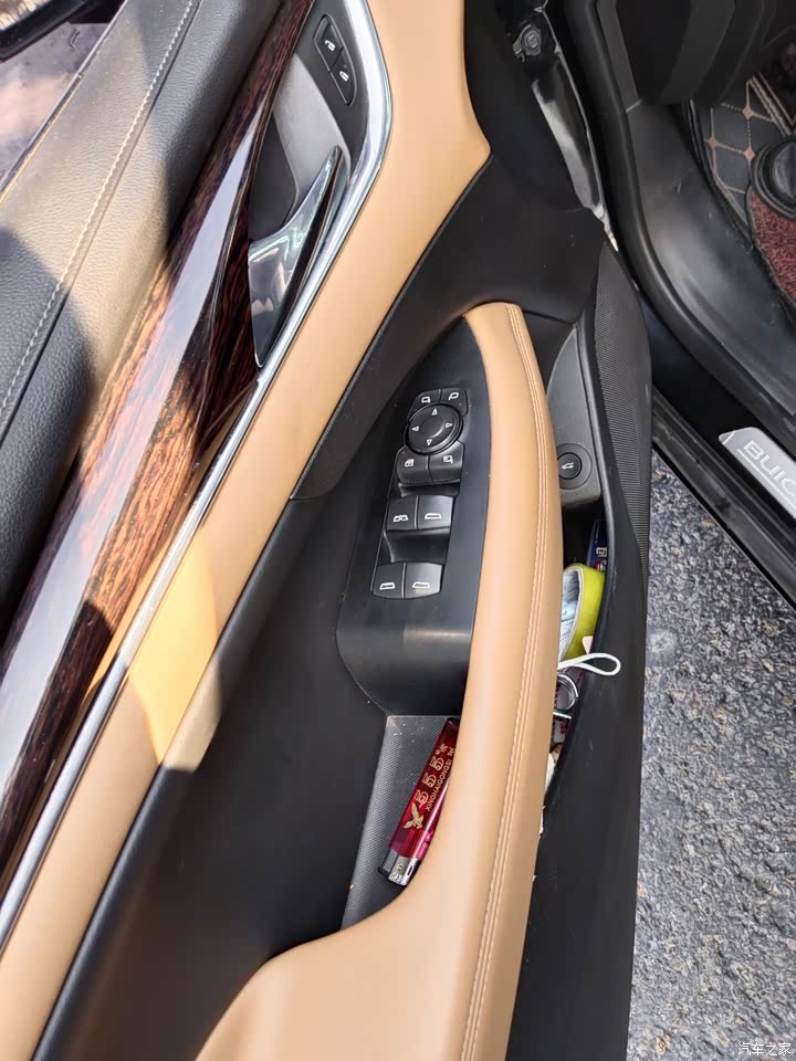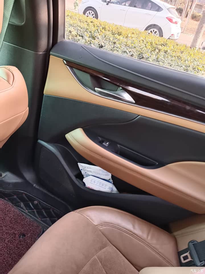 在内饰这点上,用料还是很棒的,大量的软皮包裹真心不错,手感也是很好,还有装饰木纹显老气触感细腻高级。内部隔音效果比较一般,边上车子经过还是能听到的。