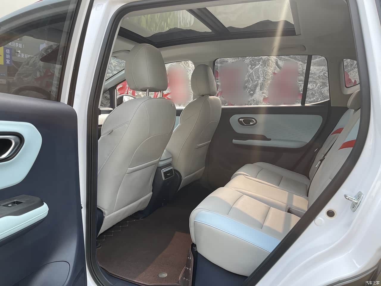 后排空间很大,坐三个成年人也不挤,很适合我这种有家庭,带小孩的。车顶高,一岁多的小孩在里面玩得比较开。