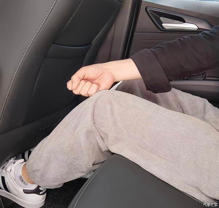 可以看到前排调到最佳驾驶状态,后排空间依旧很好