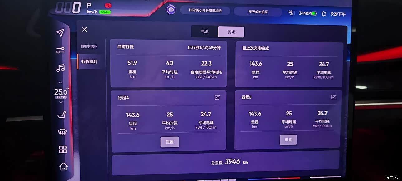 HiPhi z续航表现的部分仰赖于120度电池,妥妥没有任何续航焦虑,我都一度怀疑是不是“续航焦虑”这个名词是虚有其表了!一开始还担心是不是要经常去充电,但是事实上并非如此,整体用车的感觉与我开油车没有太大的分别!当然建议家里最好安装一个充电桩,回家要有插电的习惯就可以了!而且现在的充电硬体也非常完善,哪哪都有地方可以补能,所以里程焦虑在哪里? 如图所示(动态续航),充到90%电量后开了143公里,还剩344公里。