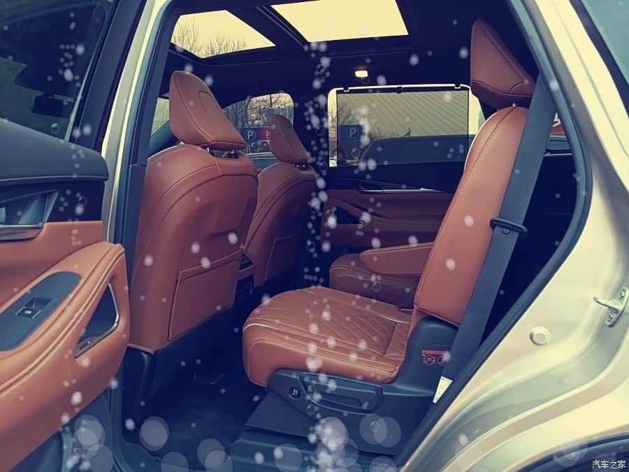 车里的空间水平挺不错的,不愧是中大型SUV,不管怎样设计车内空间都绰绰有余。座椅的尺寸看上去挺宽大的,乘坐起来也相当的舒适。2005毫米的宽度就是霸气,坐在车内有一种坐在家里大沙发上的感觉。326-2352升的后备厢也足够用。