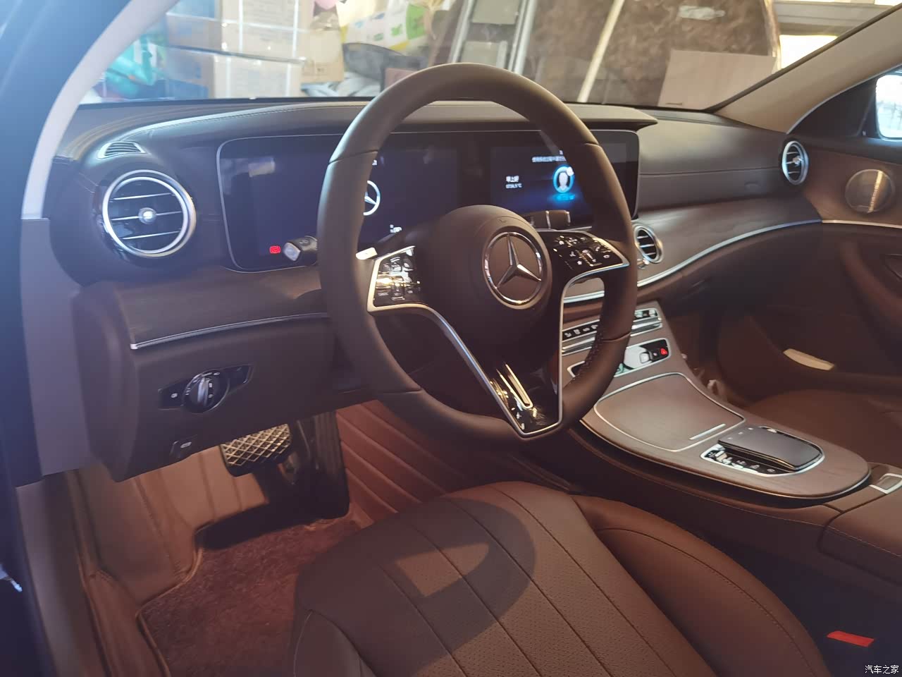 相信很多人都有一个奔驰梦,特别对于我们八零后,从小的时候就认为奔驰是豪华车的代表,长大后才知道有更多的豪华品牌,奔驰只是其中之一而已,,但奔驰的梦想却一直都在,不但没有随着时间的流逝泯灭,反而更加的强烈了,事业刚起步的时候选择了起亚K2,价格低廉,样子美观,对于当时来说,有一辆这样的车已是莫大的幸福,它带给了我们全家一段段温暖,欢笑,幸福而又美好的回忆,当然对她也是特别有感情。随着大娃,二娃的出生,事业的发展,渐渐的有了换车的想法,这几年有几次换车的机会,都因为事业的资金投入搁浅啦,今年终于又有了机会,但是选择suv还是轿车是个抉择,试驾了2023款福特探险者,配置极高,但是做工粗糙,爱人直接否啦,我说那就看看奔驰吧,来到利星行,直接了解E,之前做过功课的,所以就是试驾,看内饰,和车感啦。一圈下来,我们都很满意,所谓奔驰真的是男人,女人都喜欢的那种车。正好碰上做活动直接就定啦。交定金,等车,交车,选号上牌,一切都很顺利,顺便表扬一下长春奔驰利星行,服务售后都很好,有问题也不推诿,积极解决!真的感觉了大品牌该有的担当! 还是说说车吧,最满意的还是它豪华的内饰,每一个地方都很有品质感,包括2023款的机械按键,听说马上改款,取消按键,变成全联屏的,虽说买新不买旧,但我觉得,现在的奔驰才是他该有的样子,有些按键,才更有情怀,当然了仁者见仁,智者见智,不喜勿喷,谢谢啦。柏林之声音箱需要专业的优盘才能听出该有的效果,虽然是小柏林,但也还是可以的。还有后视镜防眩目功能,相当给力!外表也是很赏心悦目的,我选择的立标版本,主要还是喜欢这份沉稳,三叉星辉,驾驶的时候就在眼前,天时,地利,人和,愿他能照亮我的事业与前程!锋眉皓目的大灯很犀利,尾灯官方称为“龙鳞凤羽”,不仅视觉效果出色,而且夜间点亮效果、识别度很也棒,层次感也很强!真是颜值担当啊!驾驶感受也是挺不错的,四十出头的人已经不喜欢奥迪那种极速的激情啦,感觉奔驰这种沉稳的感觉还是适合的。而且起步后只要想要,推背感随时都可以!没有网评那些问题,也可能是我驾驶水平有限,感觉不出来。但也开过奥迪,宝马,其实感觉差别真的不是很大,所以真不能道听途说,自己感受还是最真实的。