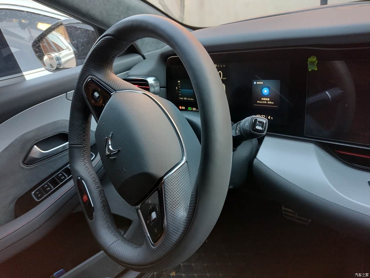 方向盘略大,对于女士来说可能会觉得有点笨重。由于有辅助驾驶系统是重力感应型的,所以在支架一般在一分钟左右的时候会进行一个提示,让你晃动方向盘,估计跟这个有关系,所以方向盘设计的比较粗大。