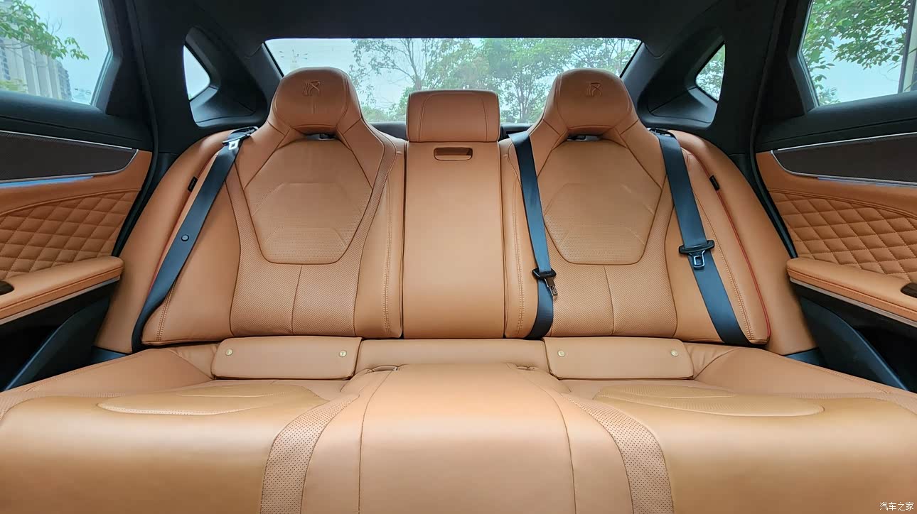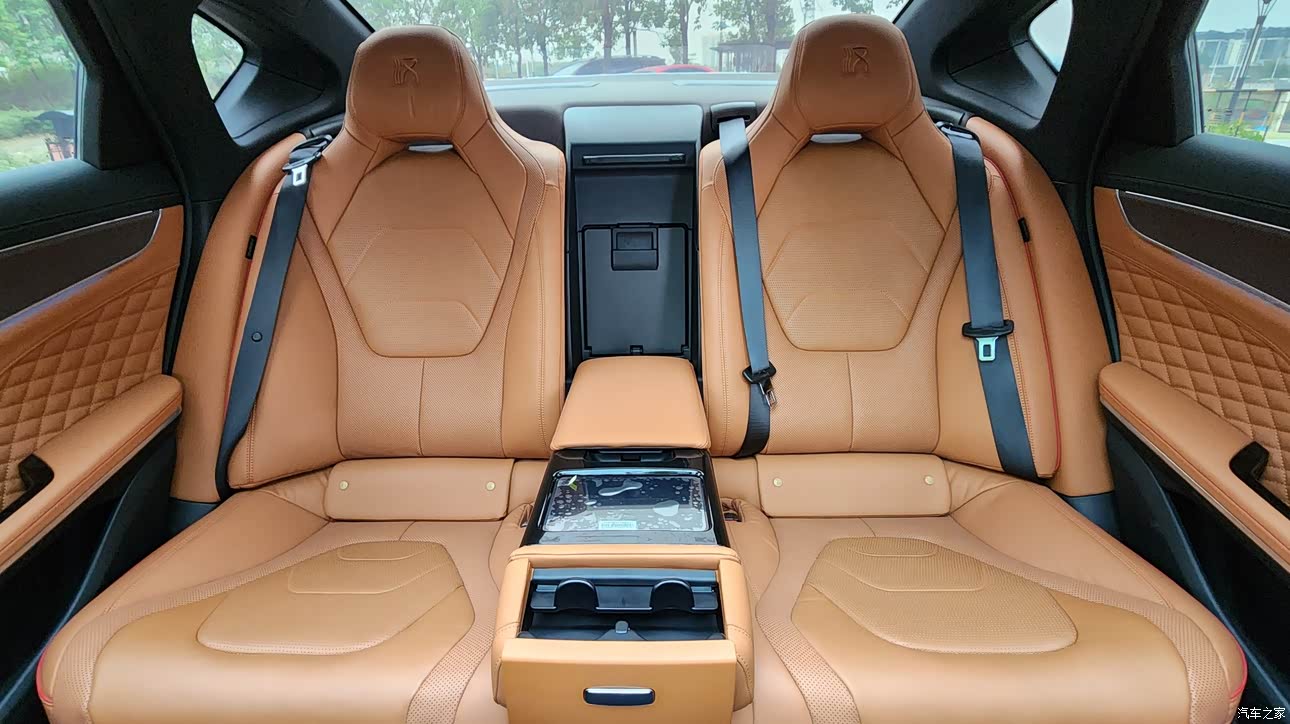 后排空间作为两人使用时非常珍贵且奢华。独立的大沙发加中央扶手,所触之处皆为皮质。两侧的氛围灯很好的营造了老版氛围。两张座椅靠背角度可调。