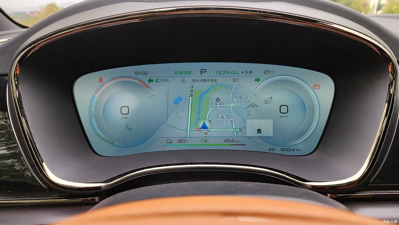 全液晶显示器的好处就是可以实现三指飞屏,导航由中控屏设定完成后可直接分享至驾驶仪表盘。同时显示方式可调,有三个模式,按个人喜好调整。