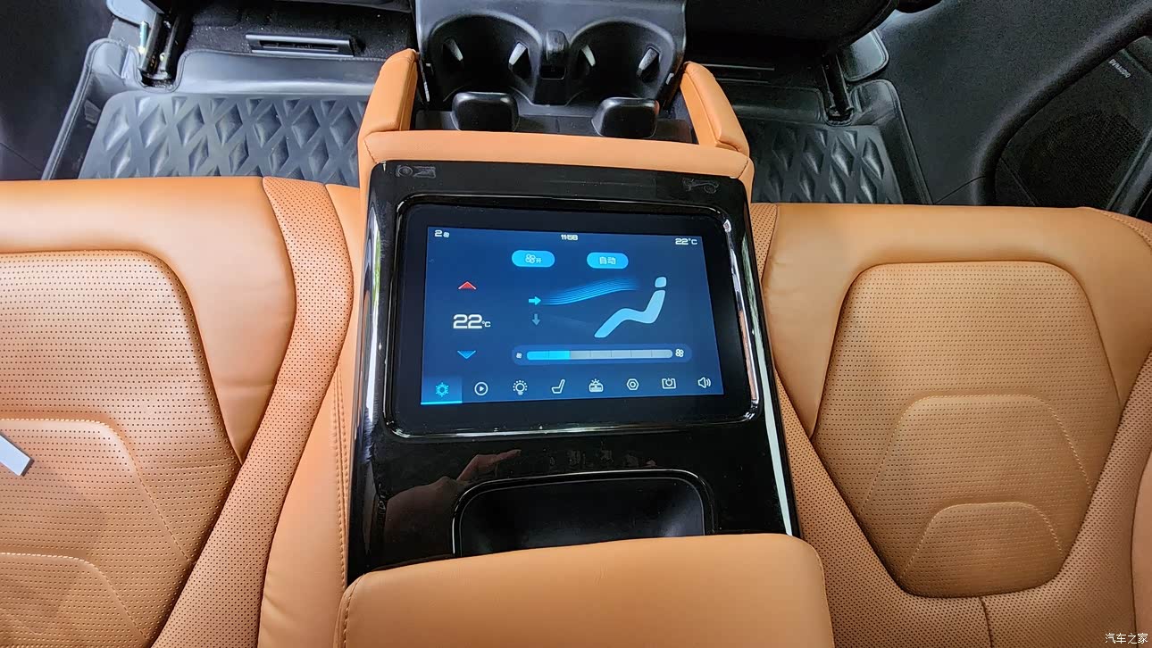 3区自动空调,后排有独立的空调调节屏幕,也可以通过扶手里的固定屏幕完成车上大部分娱乐功能的操作。