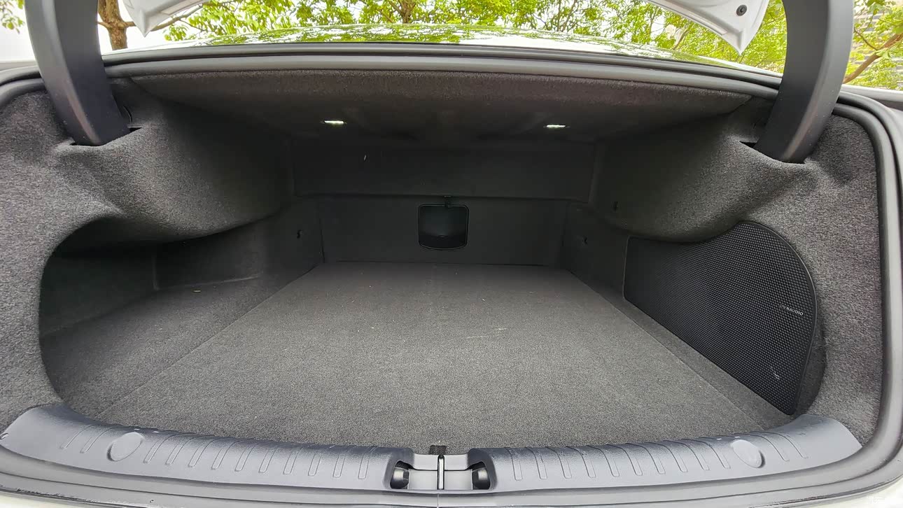 因为造型设计的原因,后备箱开口不算很大,但容积不错。可以平放三个登机箱。深度可以放下折叠单车。