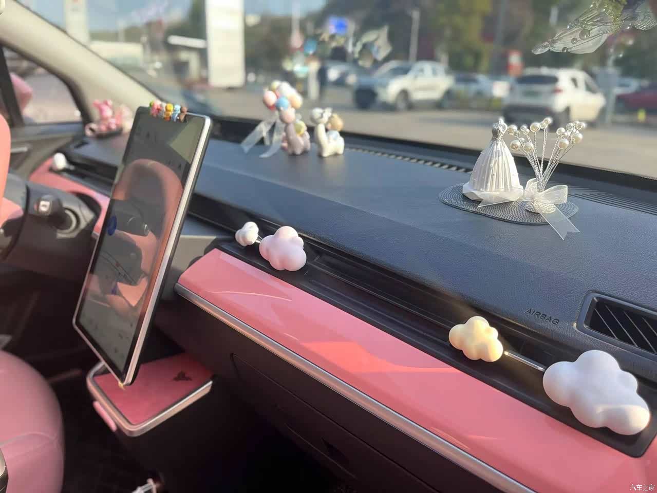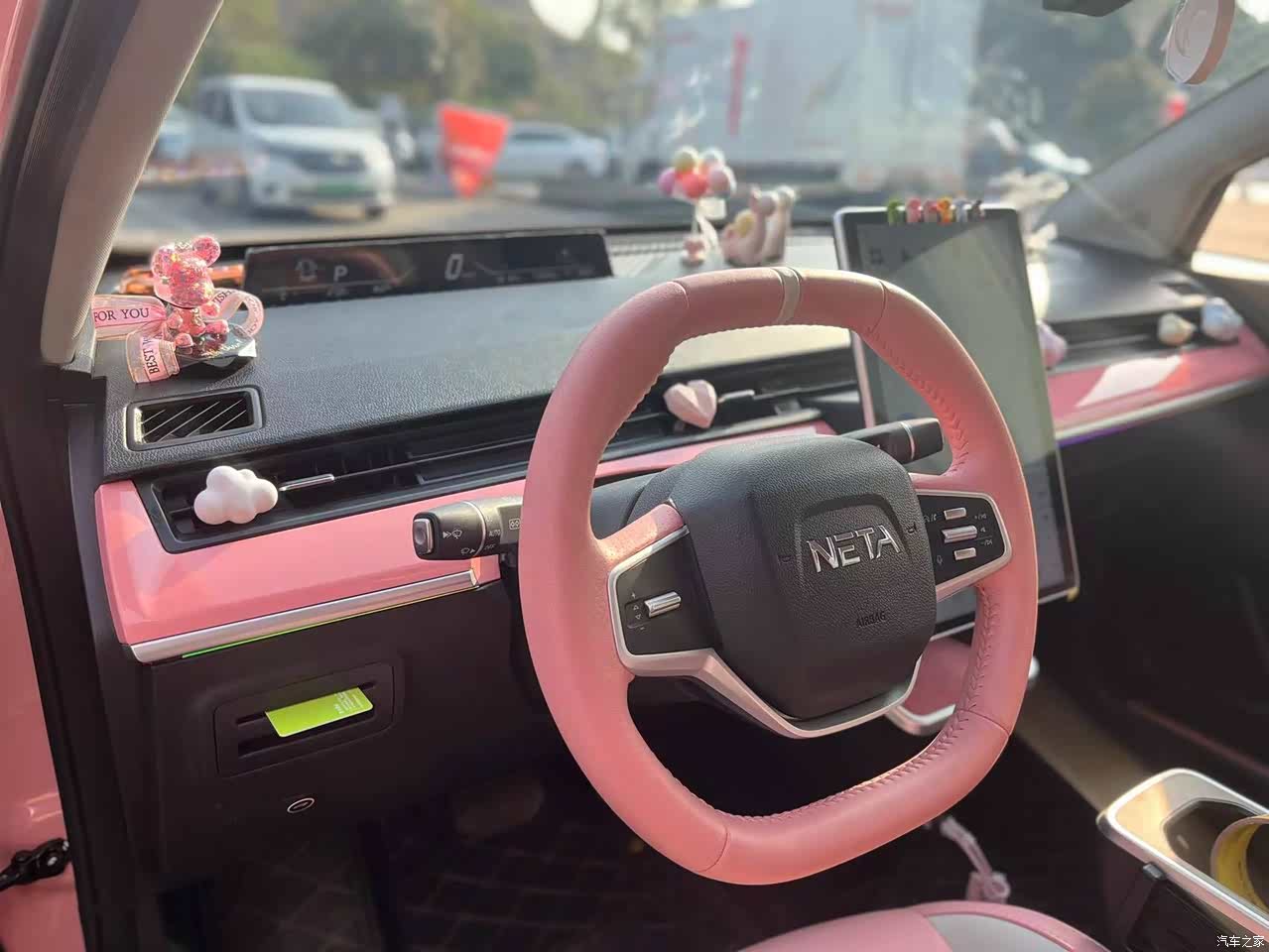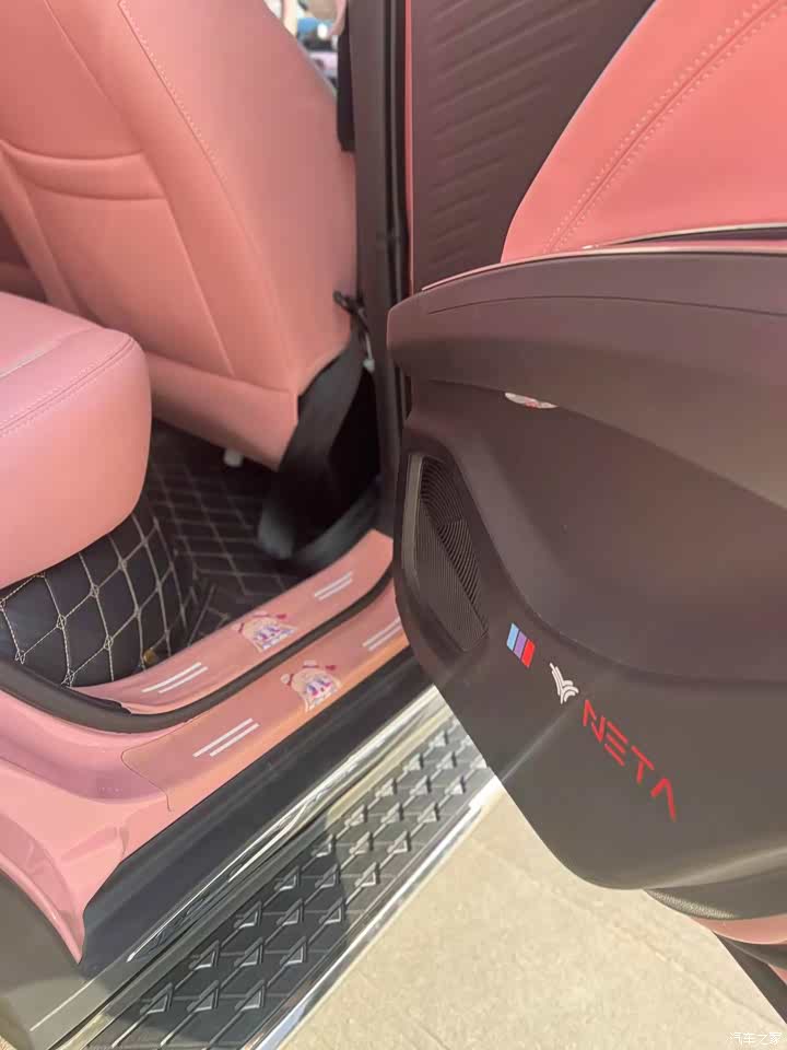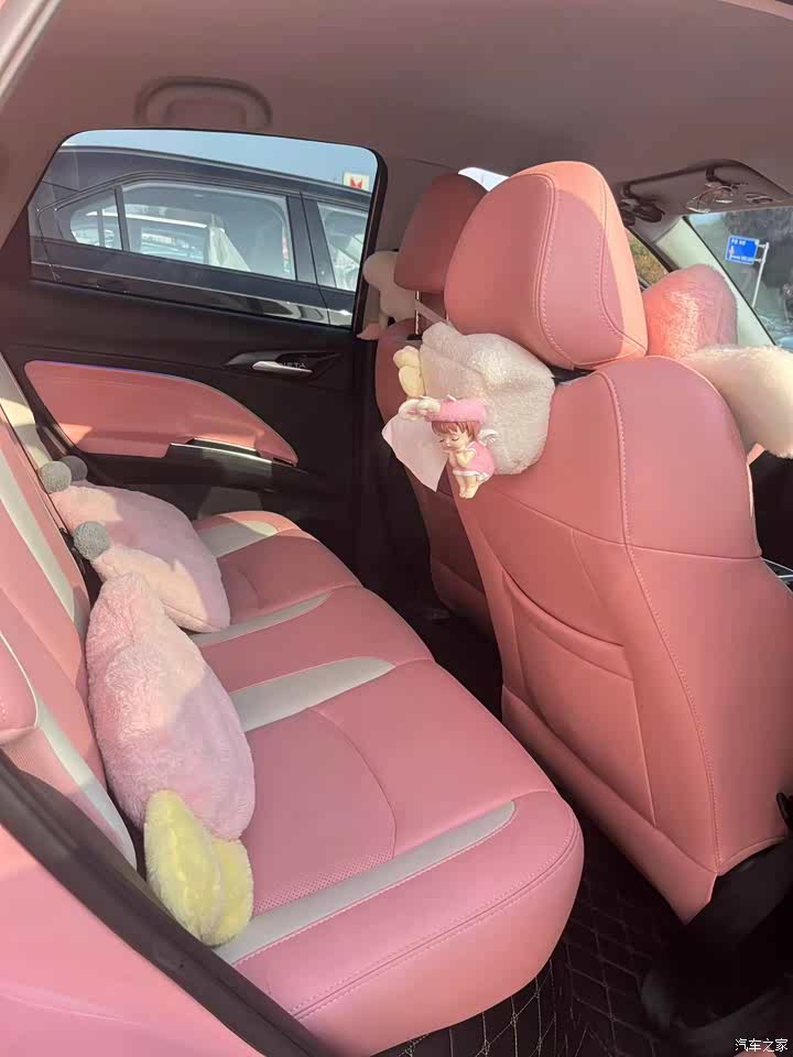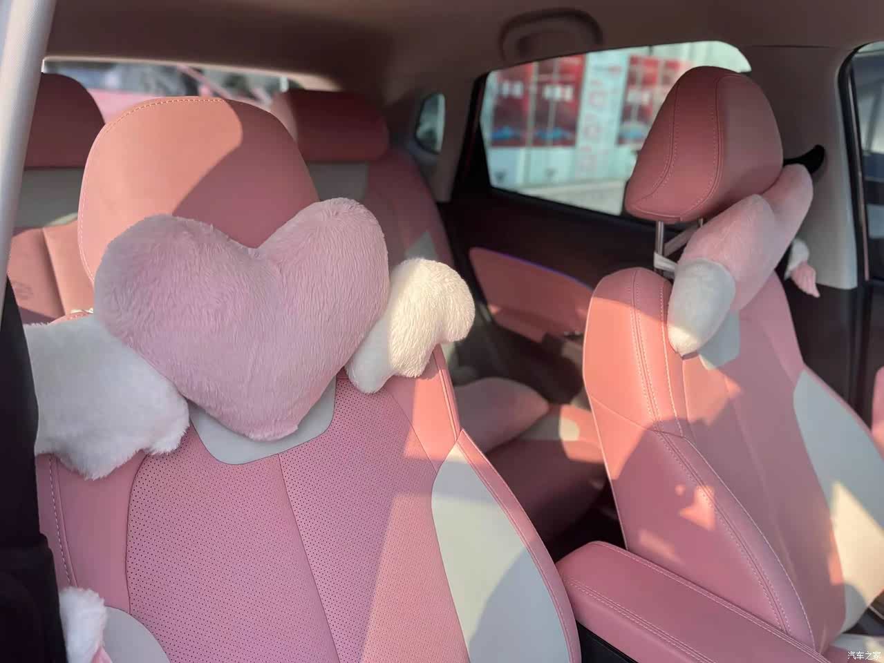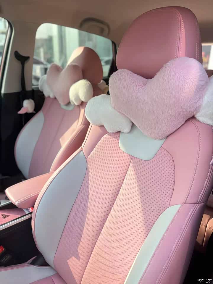 粉色内饰搭配粉色的爱心头枕,整个人都暖化了。