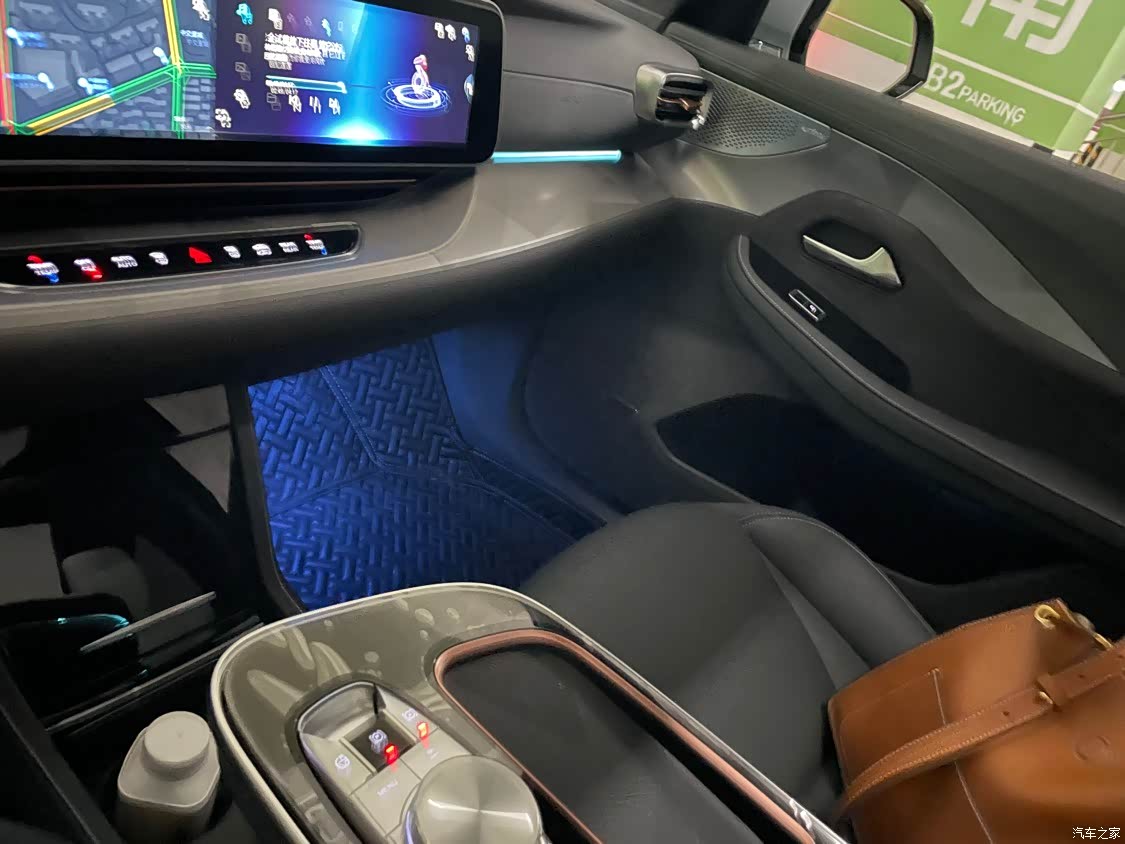 内饰虽然没有大多数新能源那么前卫和新潮,但是用料真的算良心了,门上的储物格里面都包绒了。
