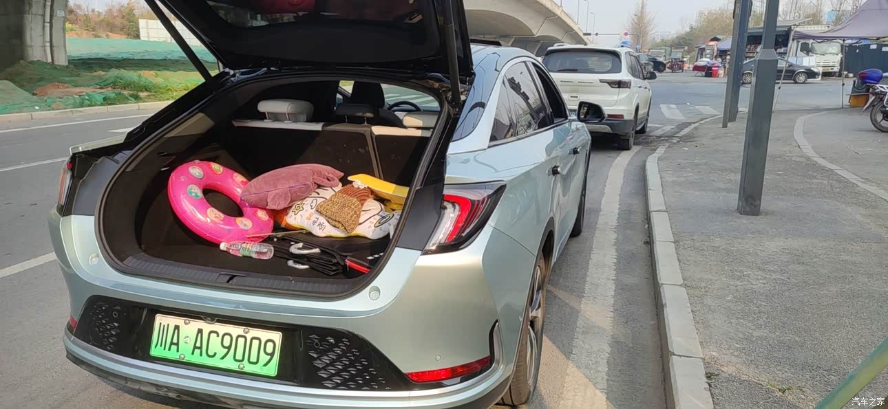 2915轴距,4930车长,1940车宽,让整个车,特别是后排空间巨大。坐我车的朋友没有不感叹空间的,上车就会说“这车好宽敞啊!”基本上后排坐三个人那叫一个轻松 后备箱也是一个很大的亮点,因为是跨界掀背造型,后备箱空间非常大,和suv比起来一点都不差,日常出行露营,后备箱能放好多露营的工具 有一次我们出去露营,一家三口就是在后备箱座椅放到铺成一张床,开着暖气美美的睡了一觉,特别舒服 储物上中控台下方设计是一个亮点,因为是断开的设计,有时候有点大的包也能放在这,不会挤着挡着的,很像有些mpv的设计