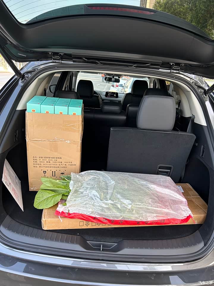 把第三排放倒空间很大,座椅立起来可以放两个旅行箱没问题