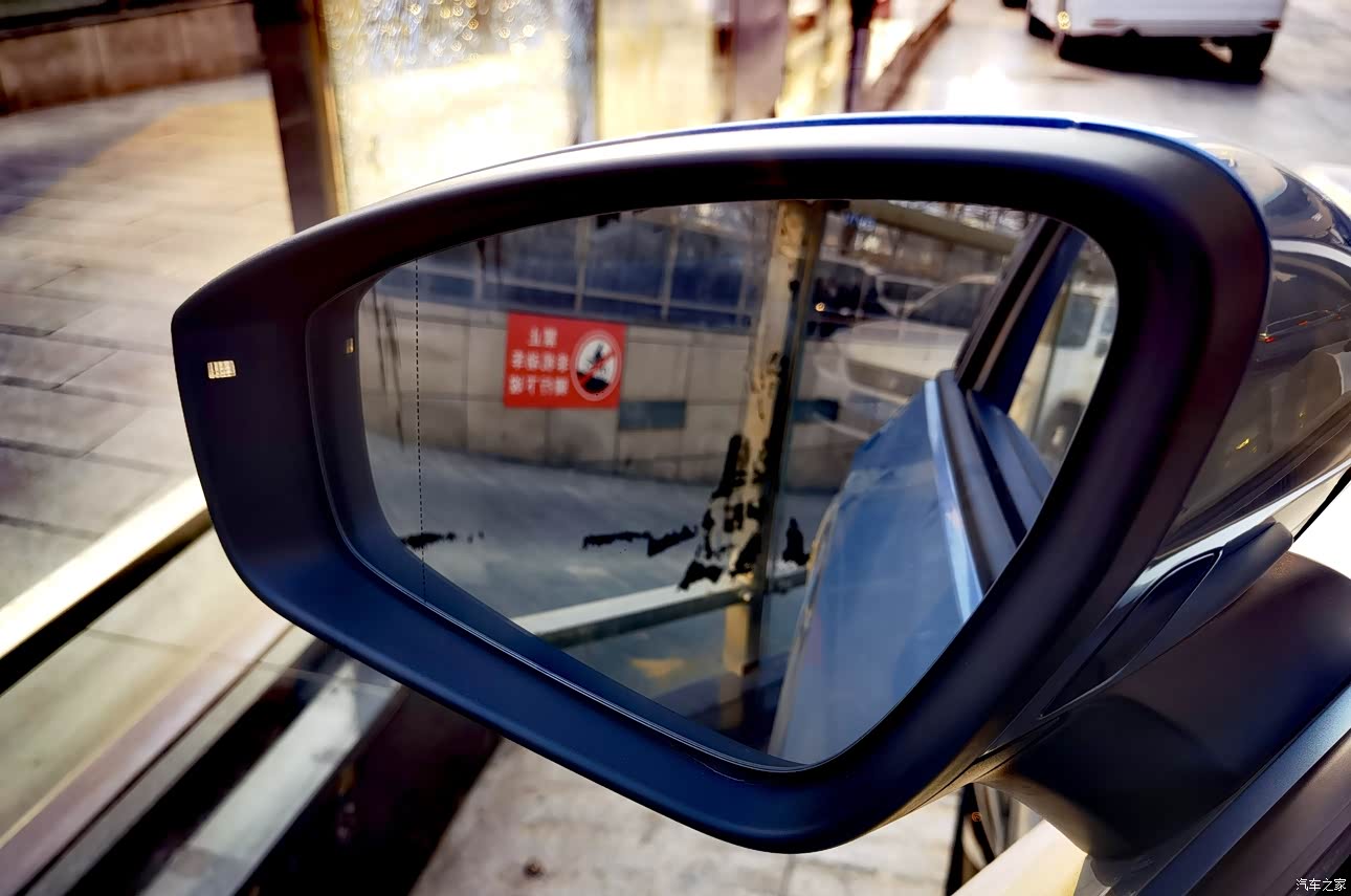 盲区报警灯在外后视镜的内侧,黄色的提示灯比较明显。