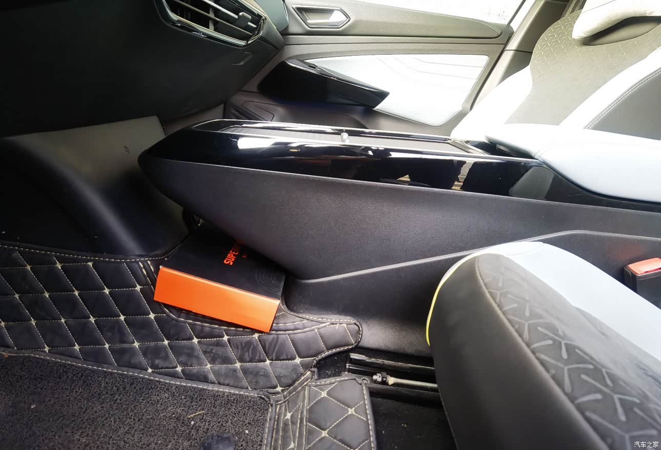 悬空的中央通道,下面可以放一些东西,比如一双鞋,这个设计在之前的上汽大众汽车上还没遇见过的,很新鲜而且比较实用。 我在这里放了一把多功能兵工铲,发生危险时可以用来破窗。
