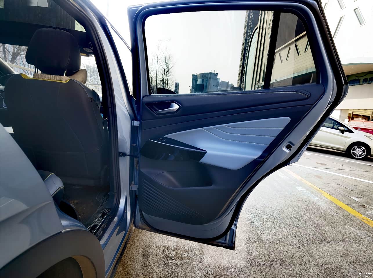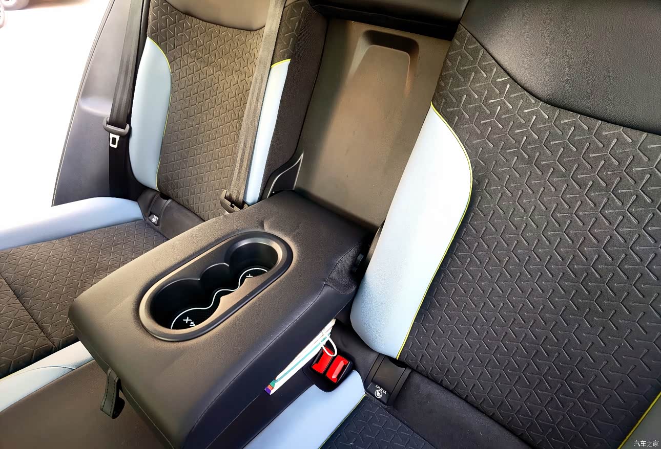 座椅头枕高度可调,靠背比较倾斜,坐垫的后部偏低,防潜猾的设计坐上去很舒服。 中间还有可折叠的扶手杯托,舒服的同时也很方便。 地板平整没有凸起,方便后排的人左右移动。 后排没有喇叭,差评,计划今年夏天时加两个。
