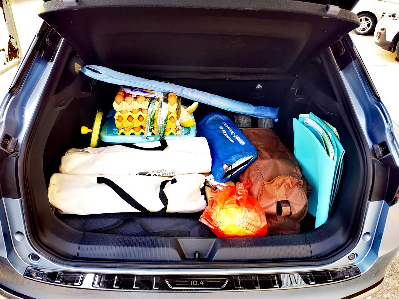 开口较大,电动尾门带“一脚踢”功能,很方便,每次回老家,双手搬东西时,直接用脚来感应开启和关闭就行。 空间大小看图吧,我觉得挺大,够我用,还有个能拆卸的分层板,上面也能放一些东西,我平时会放一个抱枕。