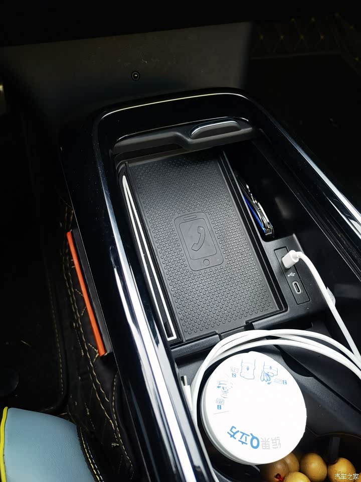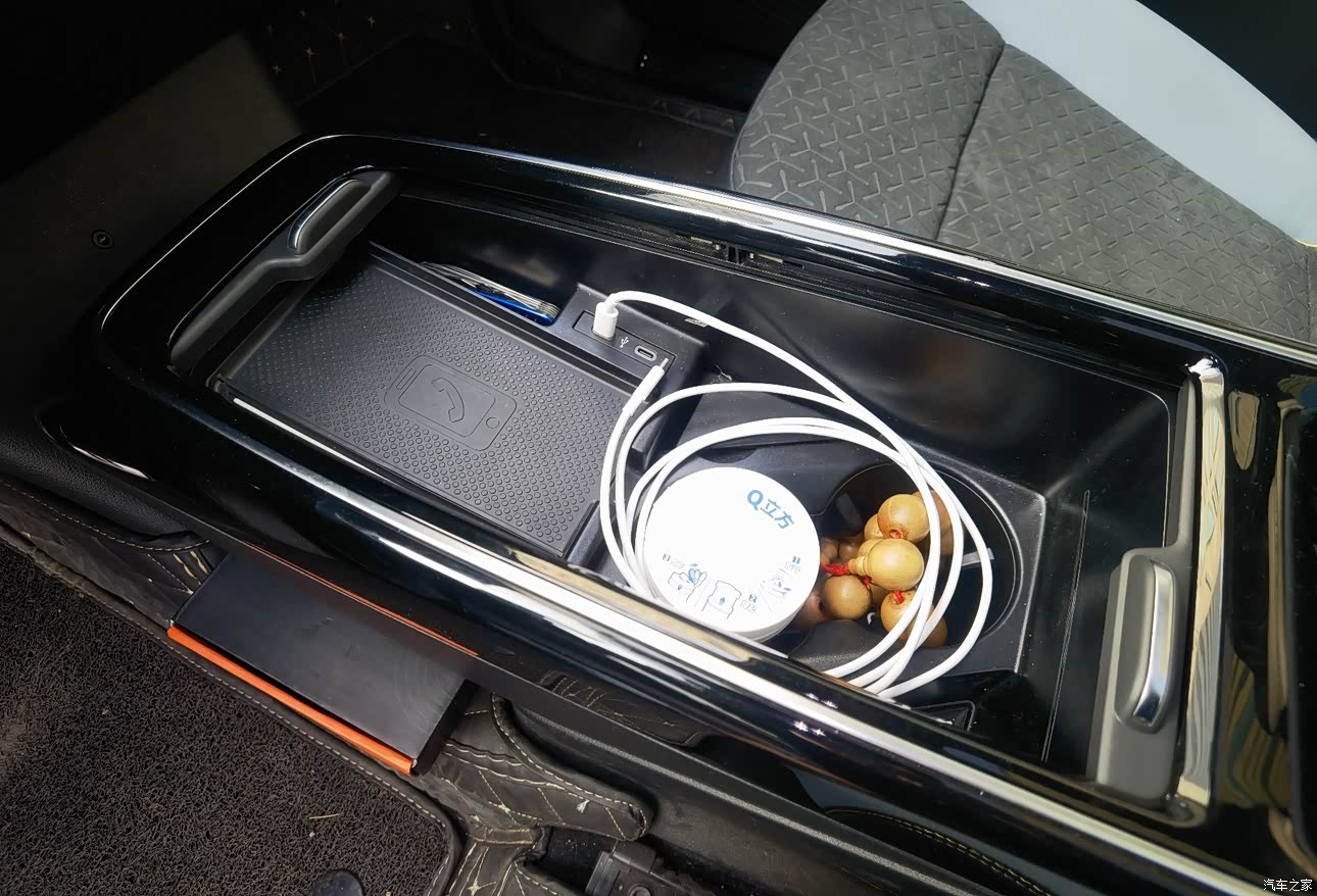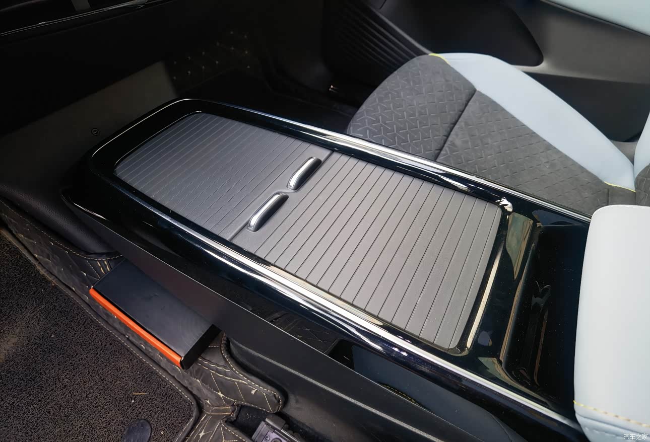 中央扶手前面的通道带“卷帘门”,里面放东西,看起来还很整洁。