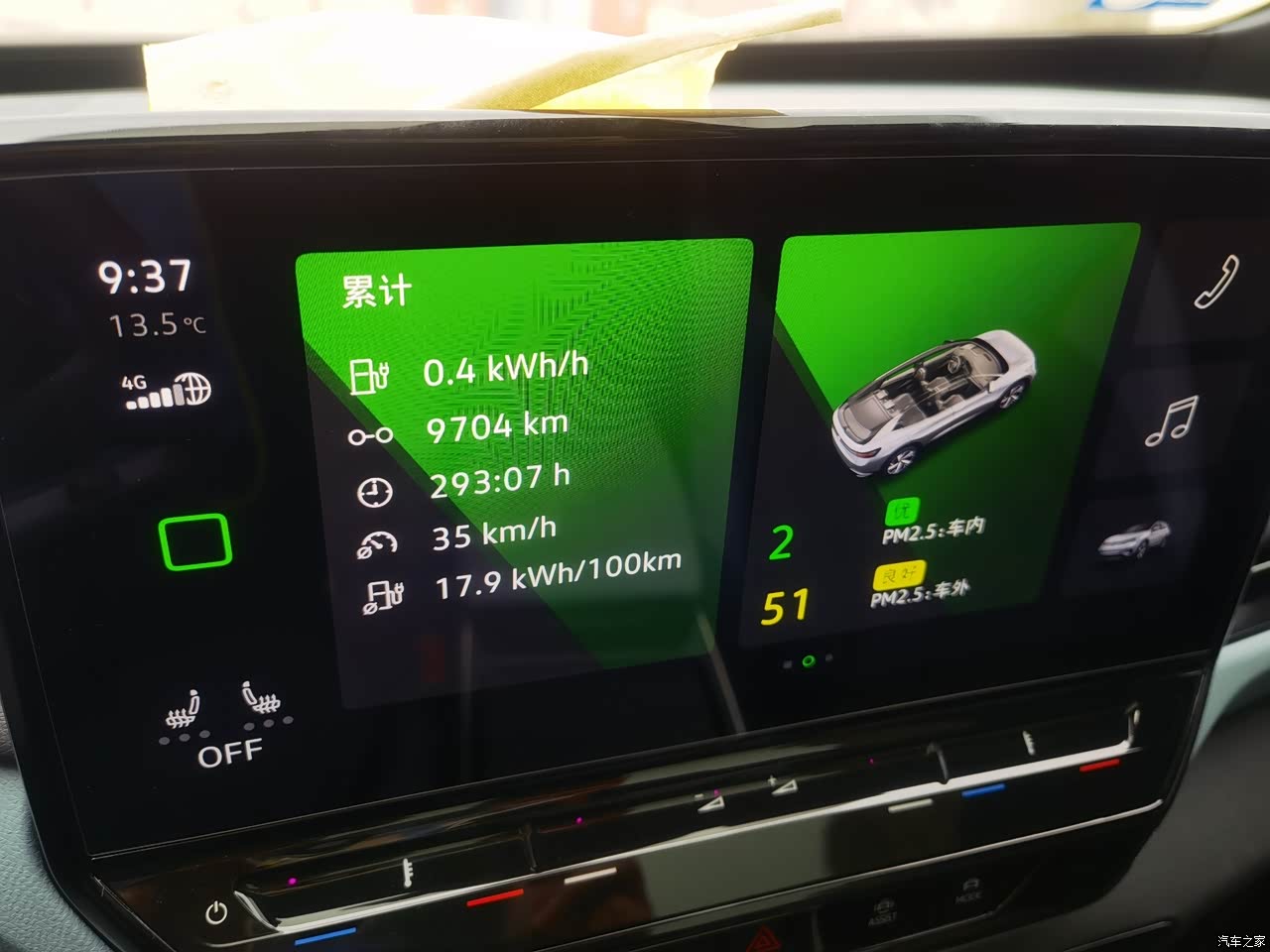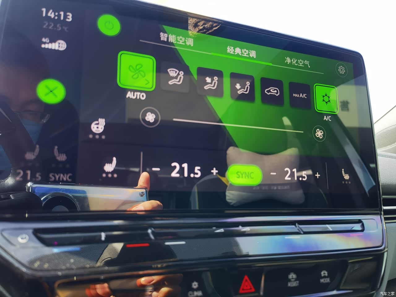 原车空调滤芯有两层,还有新风系统,可以更好地过滤车外的污染物,而且中控可以直接显示PM2.5的浓度。开启净化空气之后,能快速除霾,效果很明显。