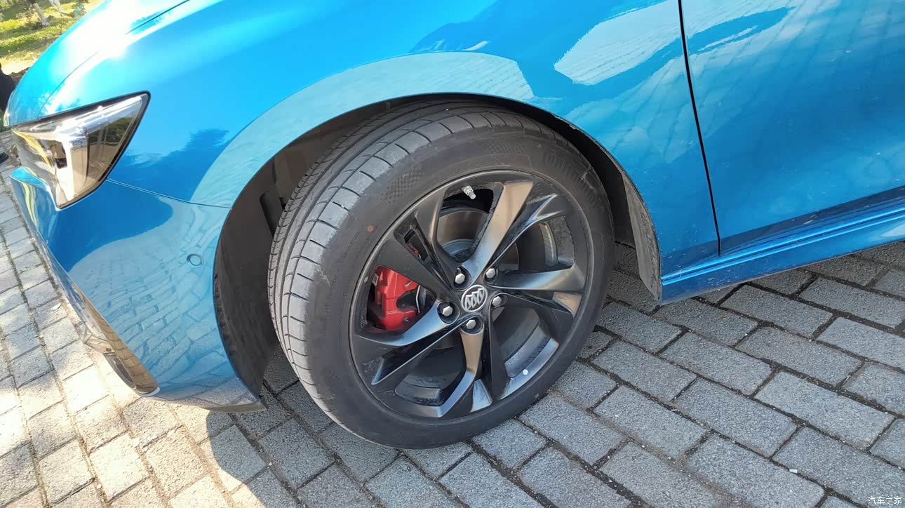 我买的蓝色pro款,前脸几处有着熏黑设计的格栅,搭配两侧的大灯很有冲击力的视觉设计,线条流畅,菱角分明GS专属的红色卡钳也是增加了运动的设计感