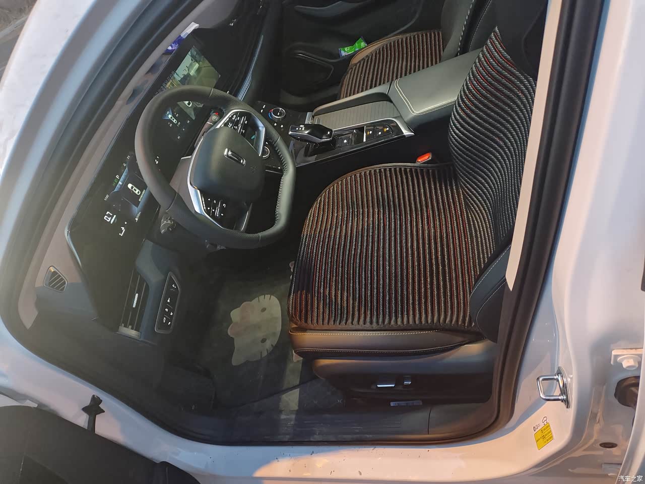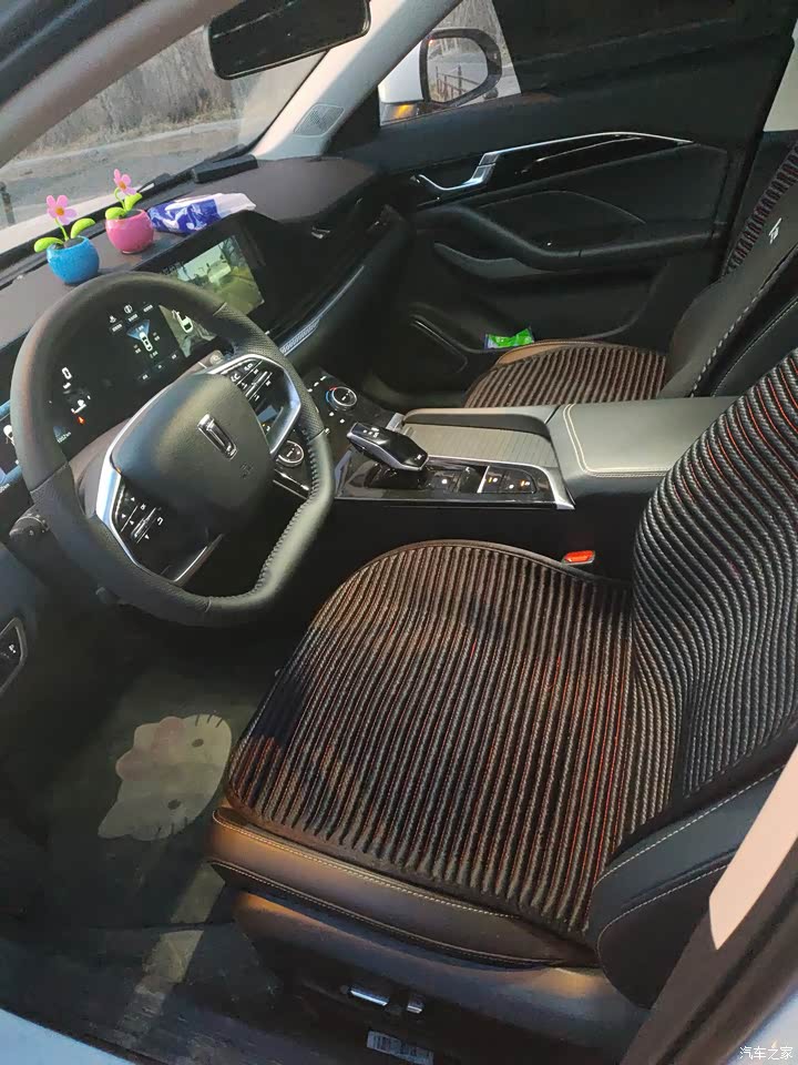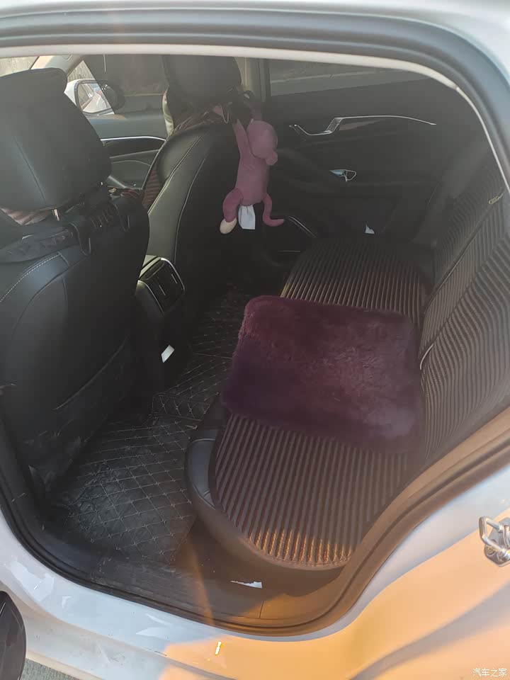 内饰方面,我家的23款B70,借鉴了红旗的显示屏方式,采用了搭载双连屏。双福式平底方向盘,内饰主要以黑色为主,显得精致干练,并且黑色还耐脏,家里孩子,浅色的,不太适合。 怕差距太大,我就给安排了套简易的坐垫,什么都木有影响!
