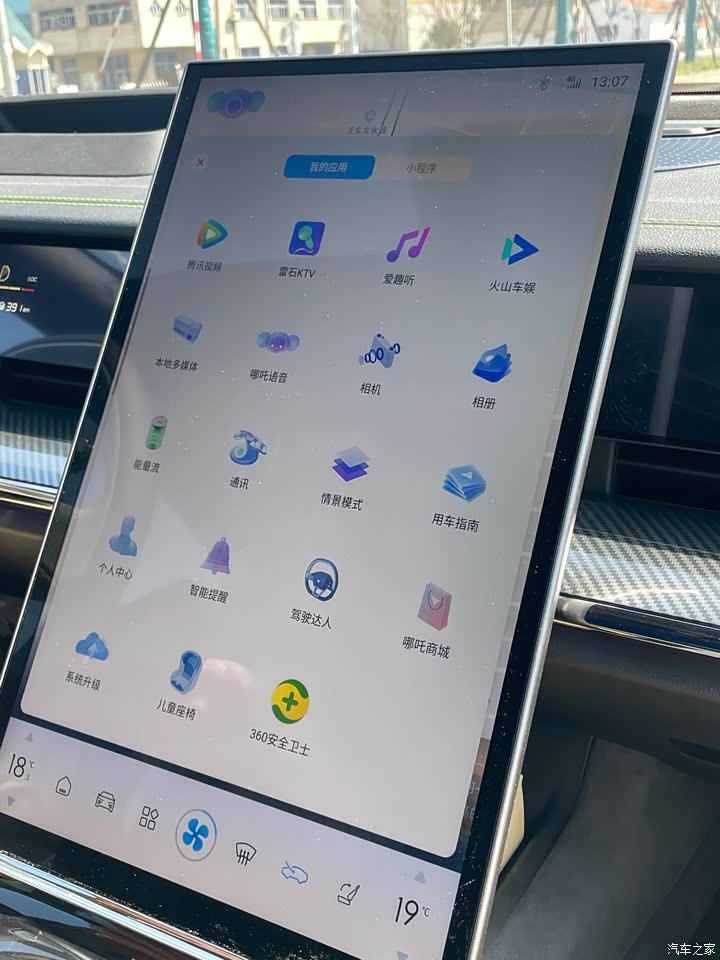 内饰我选的黑色,主要考虑到耐脏,黑色也很耐看大气。方向盘是真皮,座椅是真皮和麂皮绒双拼,软硬度适中,开车跑长途没觉得很疲惫,也配备了通风记忆按摩的功能,直接唤醒哪吒就能执行指令。