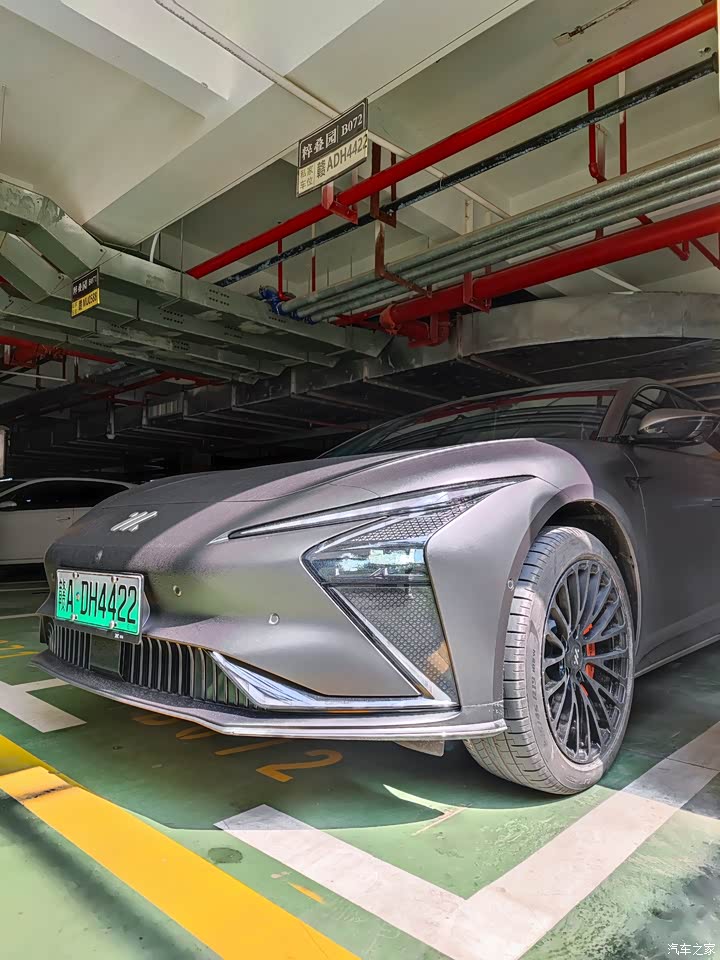 始于颜值,忠于驾控。 我选的车身颜色是伦勃朗灰,经过覆盖哑光车衣后,看起来更像莫兰迪灰色,增加了一份低调奢华感。原来的19寸原厂轮毂,我自己进行了个性化改装,升级为哑光黑色锻造轮毂,使整车更显精致豪华。