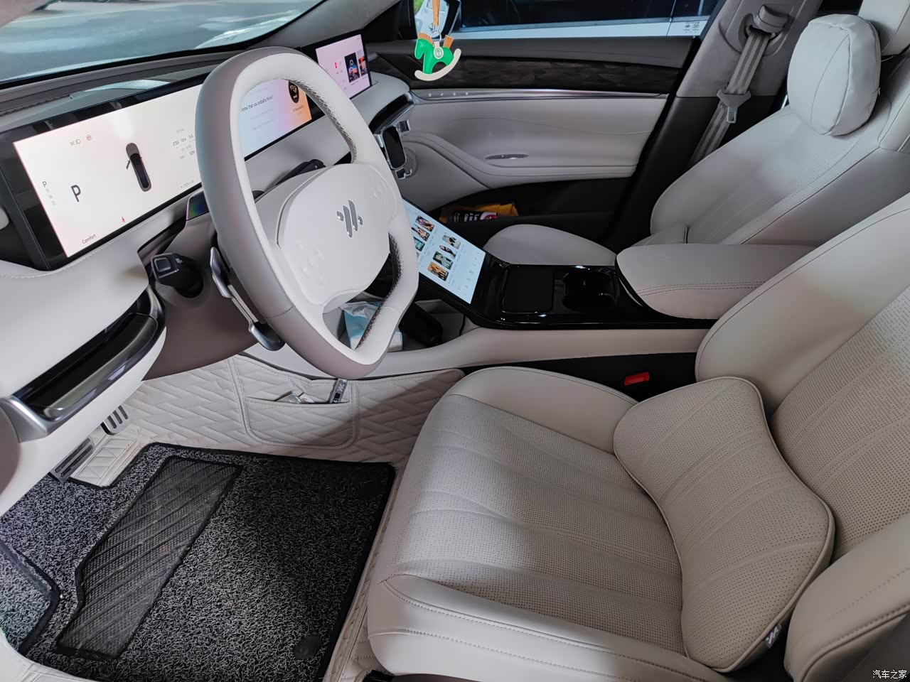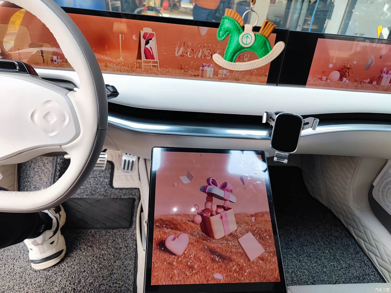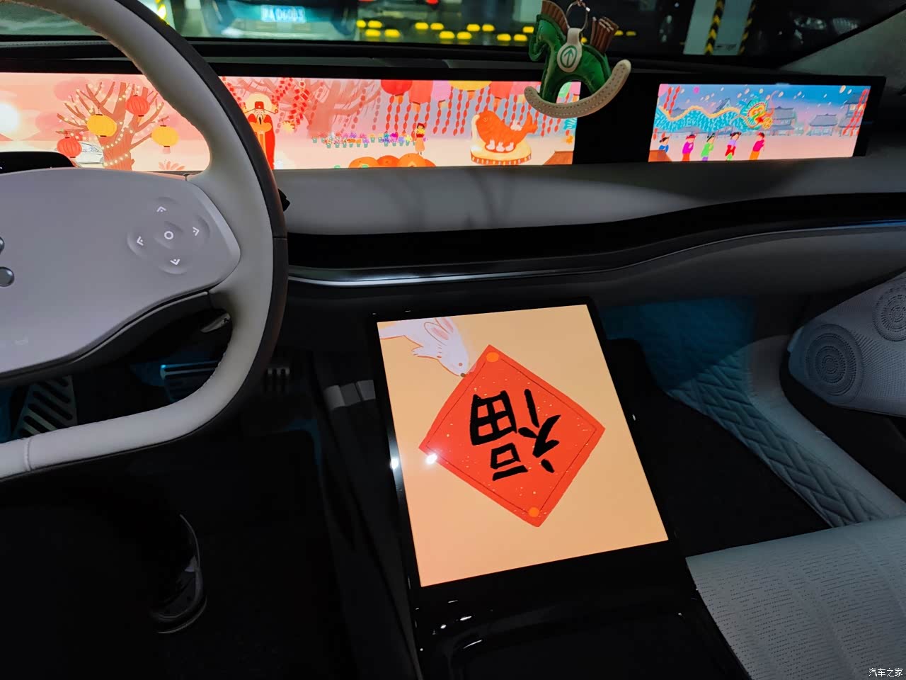 选的白色nappa真皮内饰,相较于友商的价格。智己的1888元升级nappa座椅外加定制卡钳颜色相当于是白菜价了。 可升降的大连屏也是内饰的亮点之一。虽然说升降屏实际用处不大,但每次上车都拉满了仪式感。