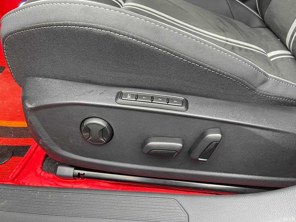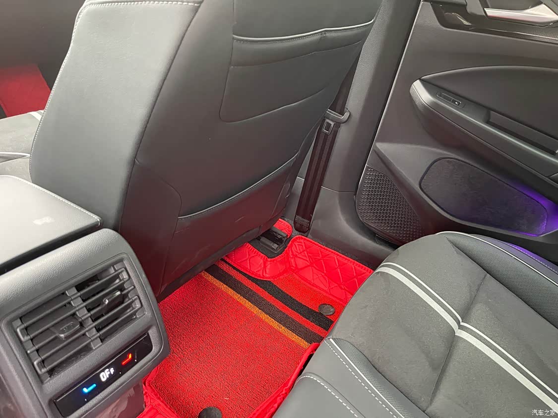 内饰整体搭配有点凸显平庸了,所以我们搭配选择红色的脚垫。这样子白天看着也很个性,中和了内饰单调,晚上这款车的内饰因为氛围灯的加持,特酷的了。个性化的颜色选择,我喜欢一个星期换一下内饰颜色,保持驾车第一眼的新鲜度。