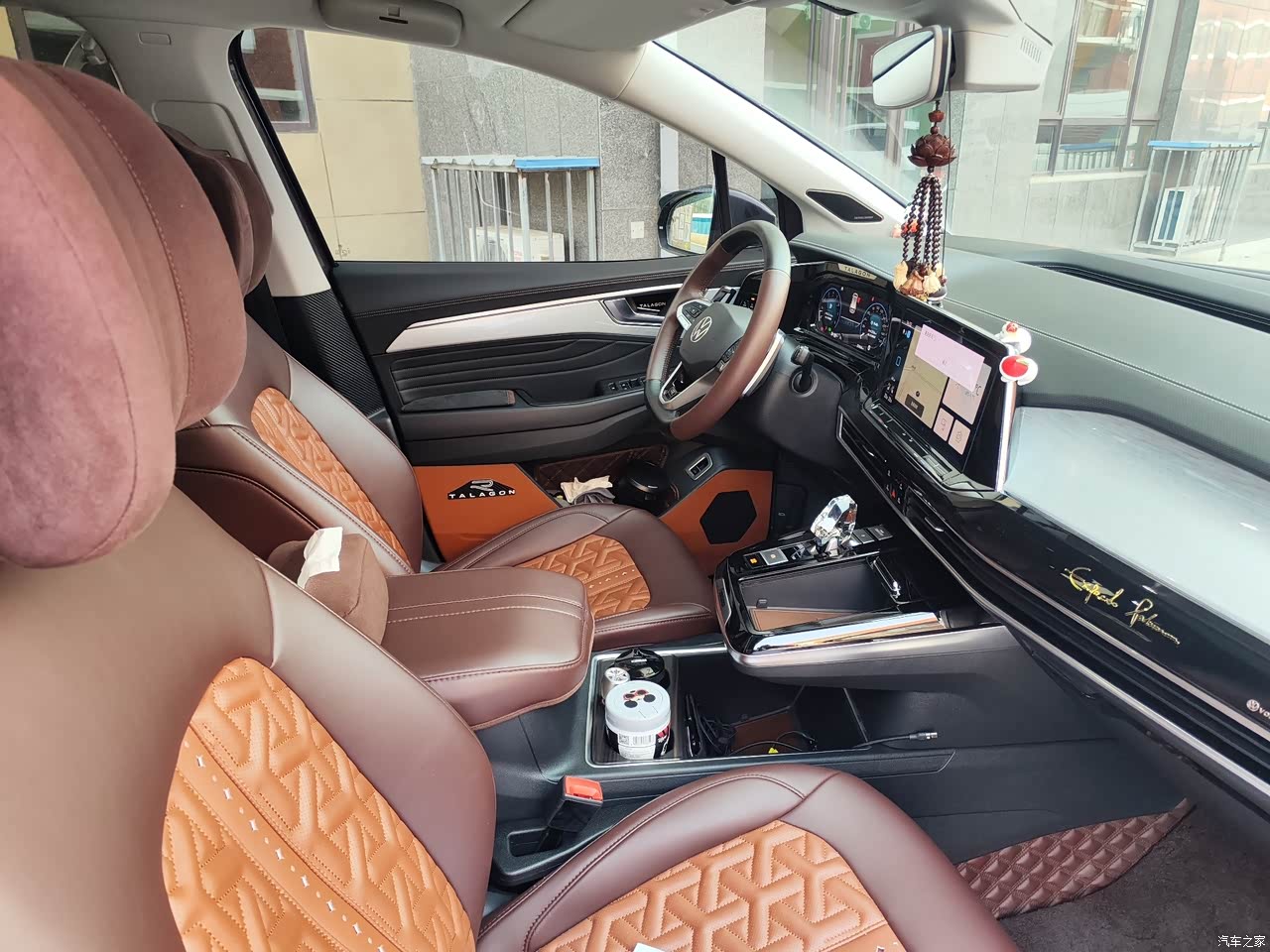 外观挺满意的,蓝色紫色纠结来着,最后还是选了这个紫色,觉得比较特别,路上开这个颜色的不多见,蓝色就比较普遍一点。大众的外观没什么可说的,就是稳重,大方。揽境比较大,它的logo也大,挺协调的。整个车给人的感觉就是比较有质感,腰线也很好看,回头率比较高。