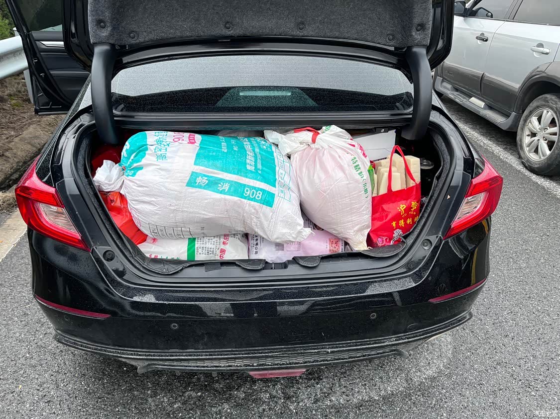 雅阁后备箱有573升的储存空间,像这次从家里出门赛了多少东西,你看看就知道啦。