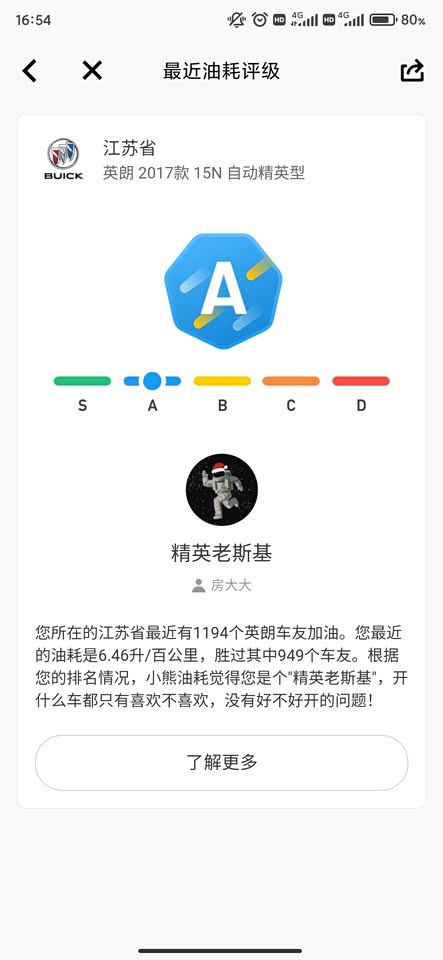 空间很不错,我们家个子都小,我175是最高的,当时看了思域我母亲嫌弃后排太小,英朗的后排她坐了觉得还挺宽敞的。