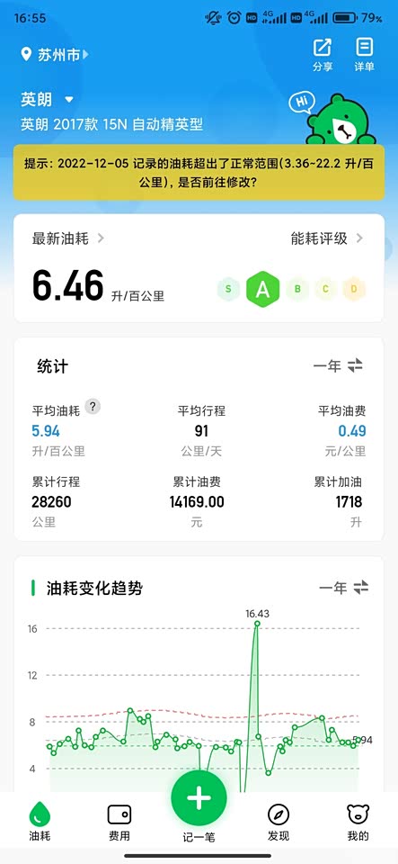 高架高速路跑的多,五六升左右。 纯市区油耗8个多。我觉得不算高我性子急,脚重。 小熊油耗记得,和同排量日本车差不多。