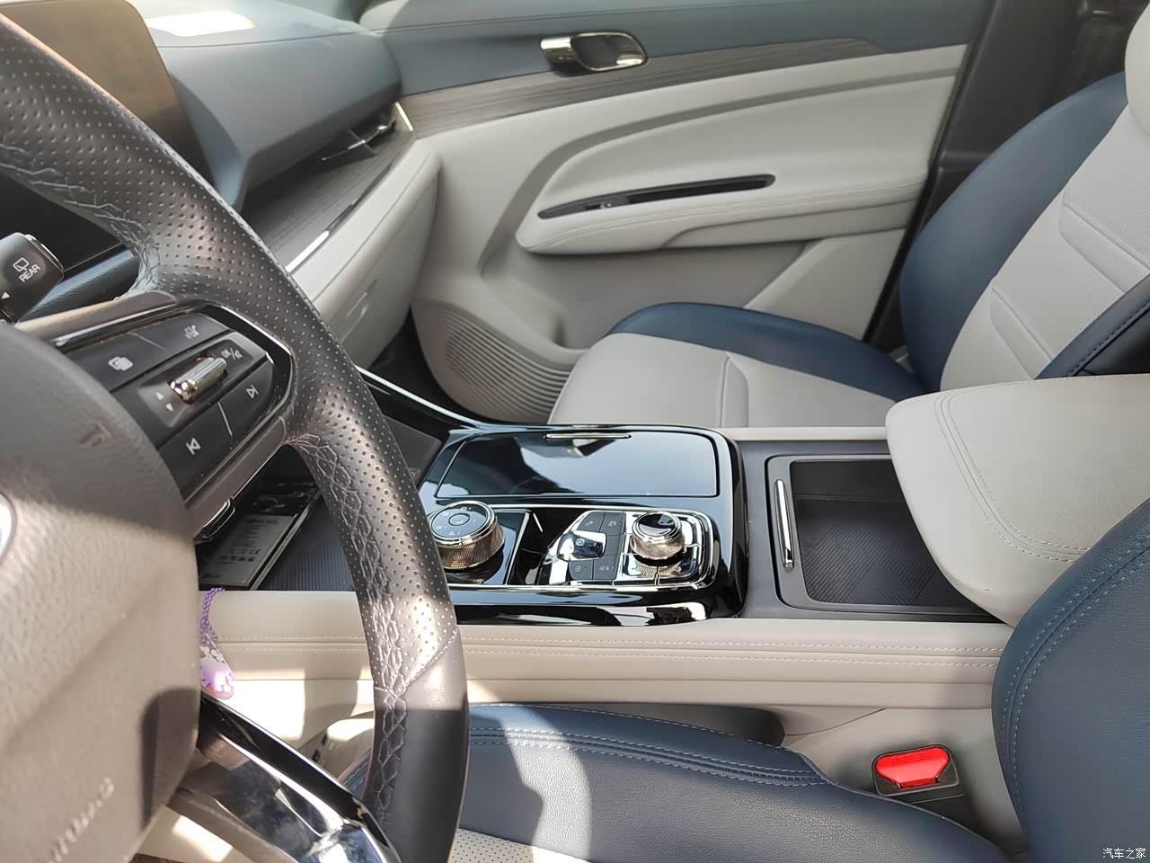 整车内饰采用蓝白双间的拼色搭配,运动感十足,双12.3英寸悬浮一体式智联屏用起来非常方便。这个大屏幕也是。新款车的亮点?内饰用料也是非常讲究的,做工精细。布局合理,符合人机工程学。领锐搭载的腾讯4.0车机系统包含了微信、腾讯、华为、百度等等应用,同时可以采用语音识别系统控制,想要的动作通过语音就可以轻松解决这台车的空调制冷制热效果都比较快,而且还带有空气净化系统,车内的味道比较小,用的时候它也会也会有提醒