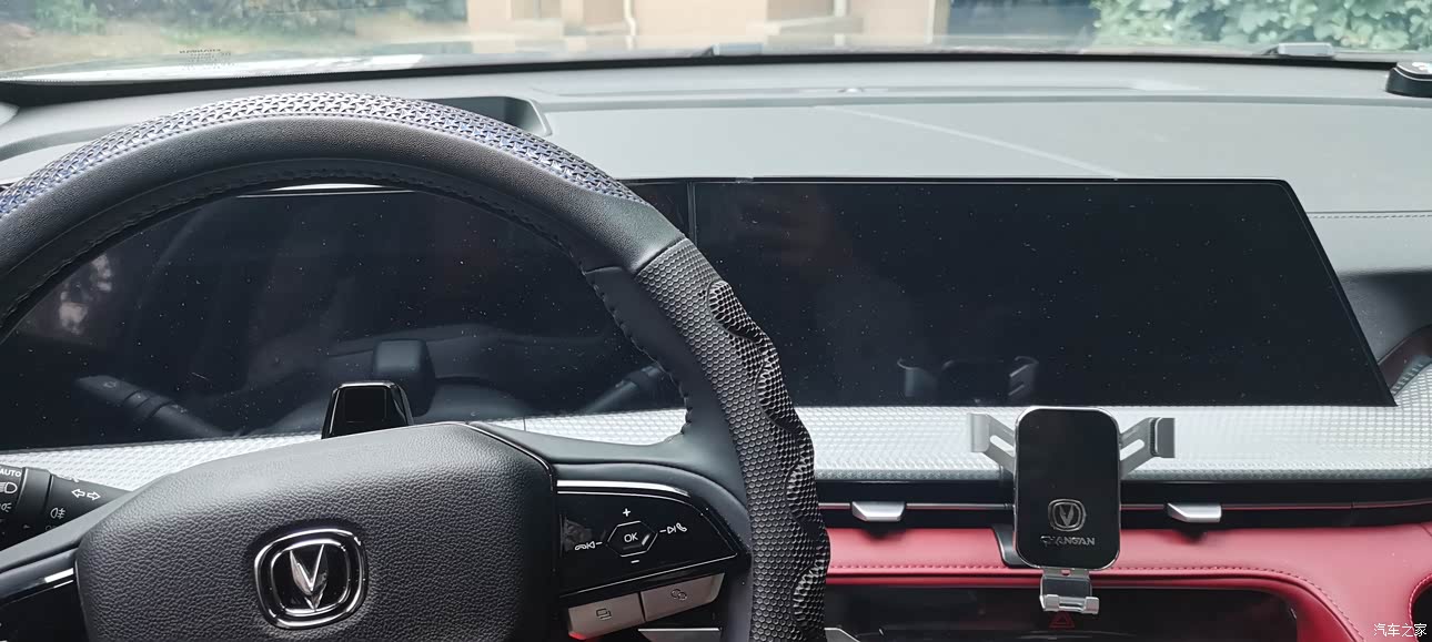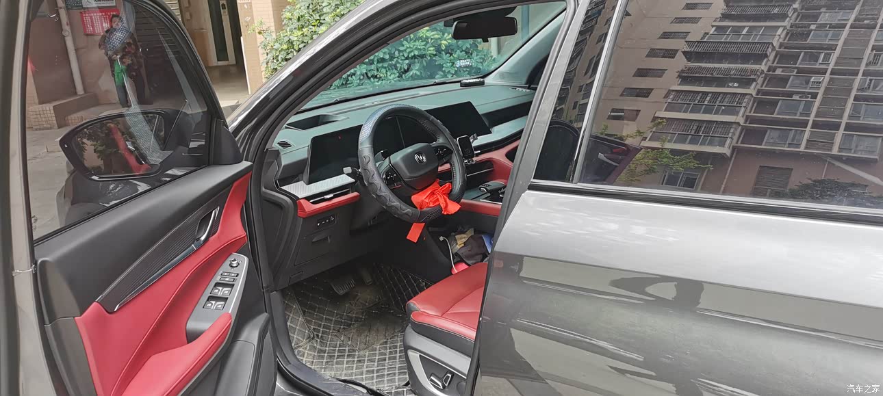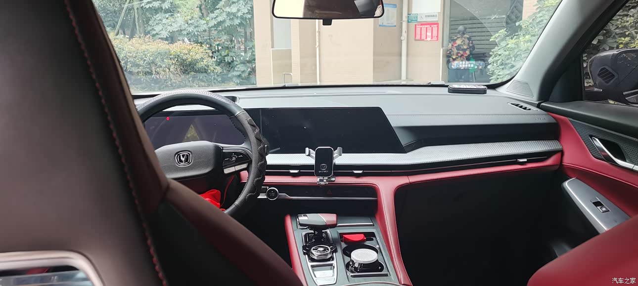 内饰方面我非常的喜欢,整体红色的色调有种豪华气质,用料也算良心,中控台布局比较合理,整体操作台偏向司机侧,方便操作,飞机挡杆式的档把手感真的很舒服,方向盘的手感也不错