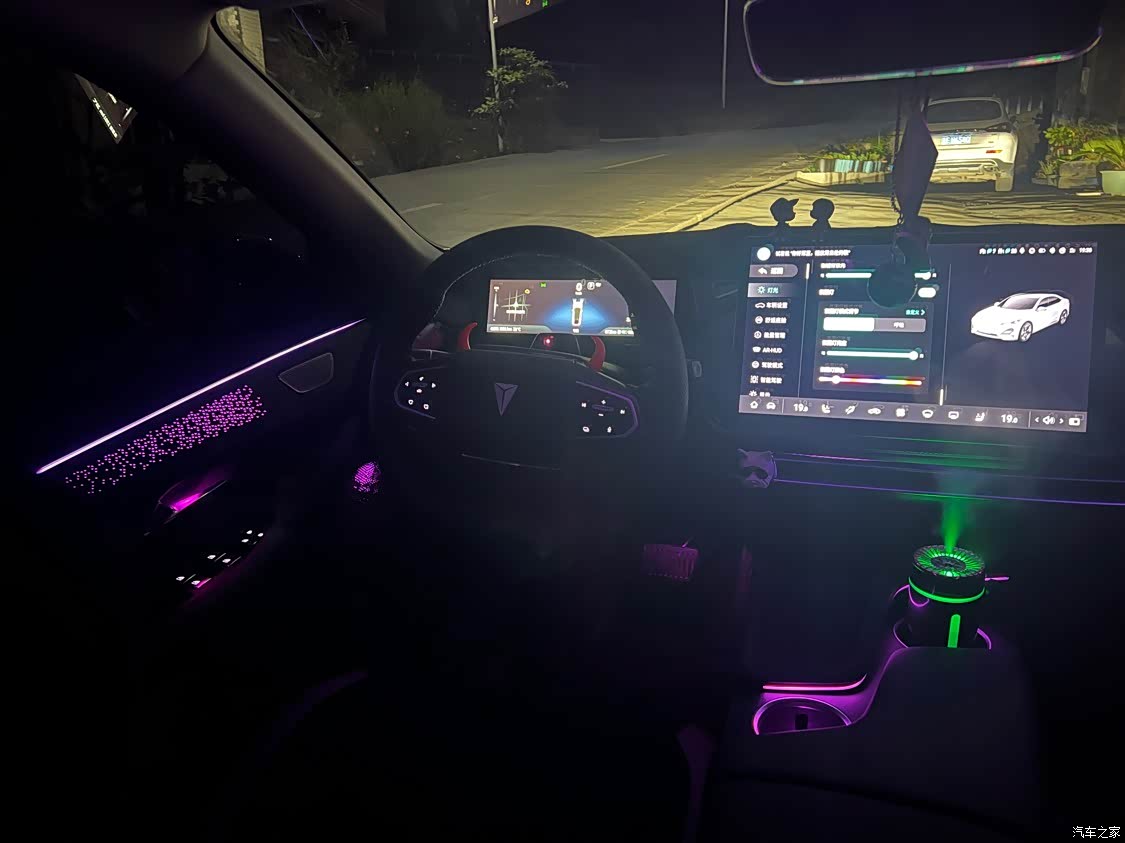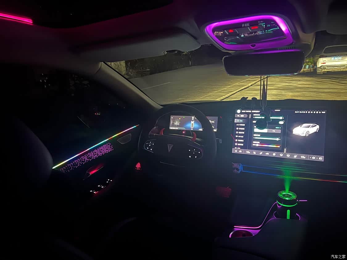 内饰吧中规中矩,出厂的氛围灯就是在开玩笑,后面自己加装了氛围灯效果还是不错