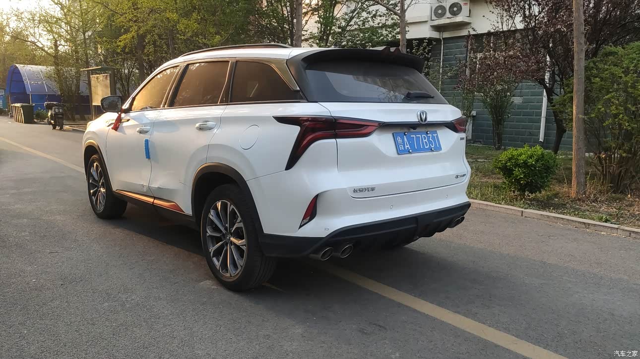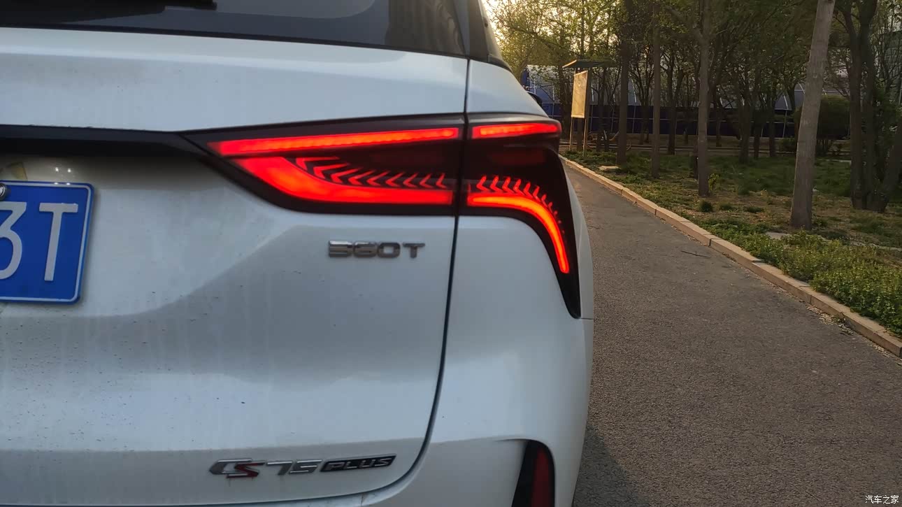 车位的大灯特有辨识度,在大街上一眼可以看出这是长安CS75plus。 再加上双出四排气,拳头大小的排气口,霸气十足。